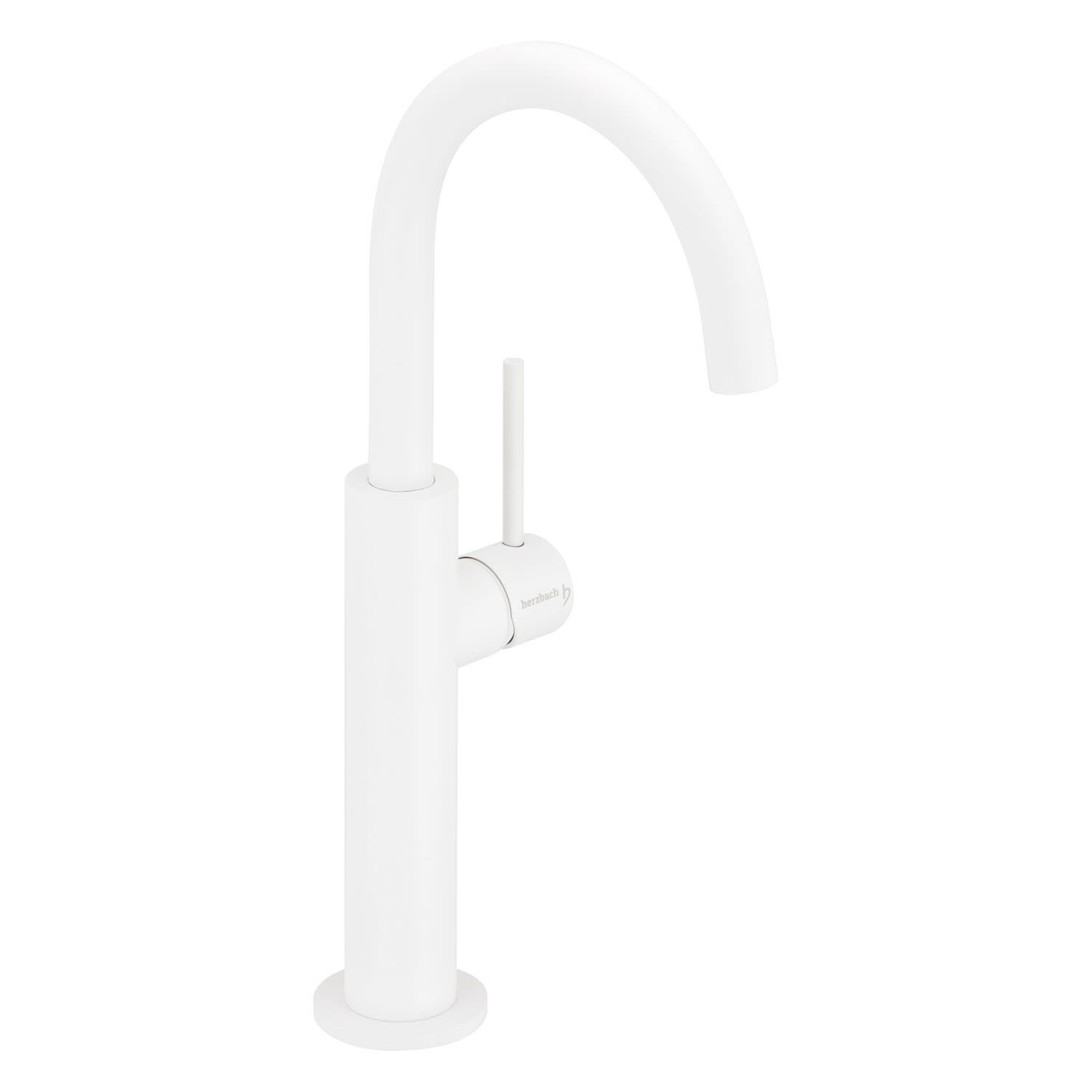 Herzbach DEEP WHITE Waschtisch-Einlochbatterie Slim L-Size mit erhöhtem Schaft, ohne Ablaufgarnitur, Griff seitlich