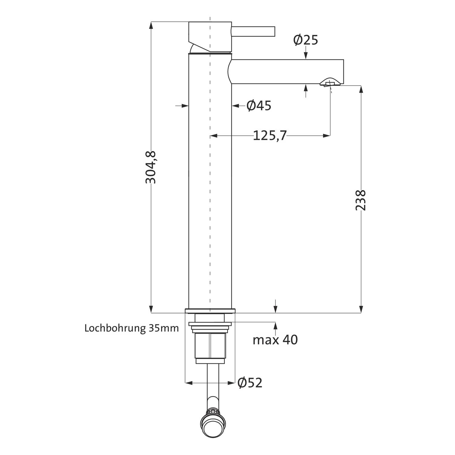 - Höhe Auslaufunterkante Perlator: 23,8 cm