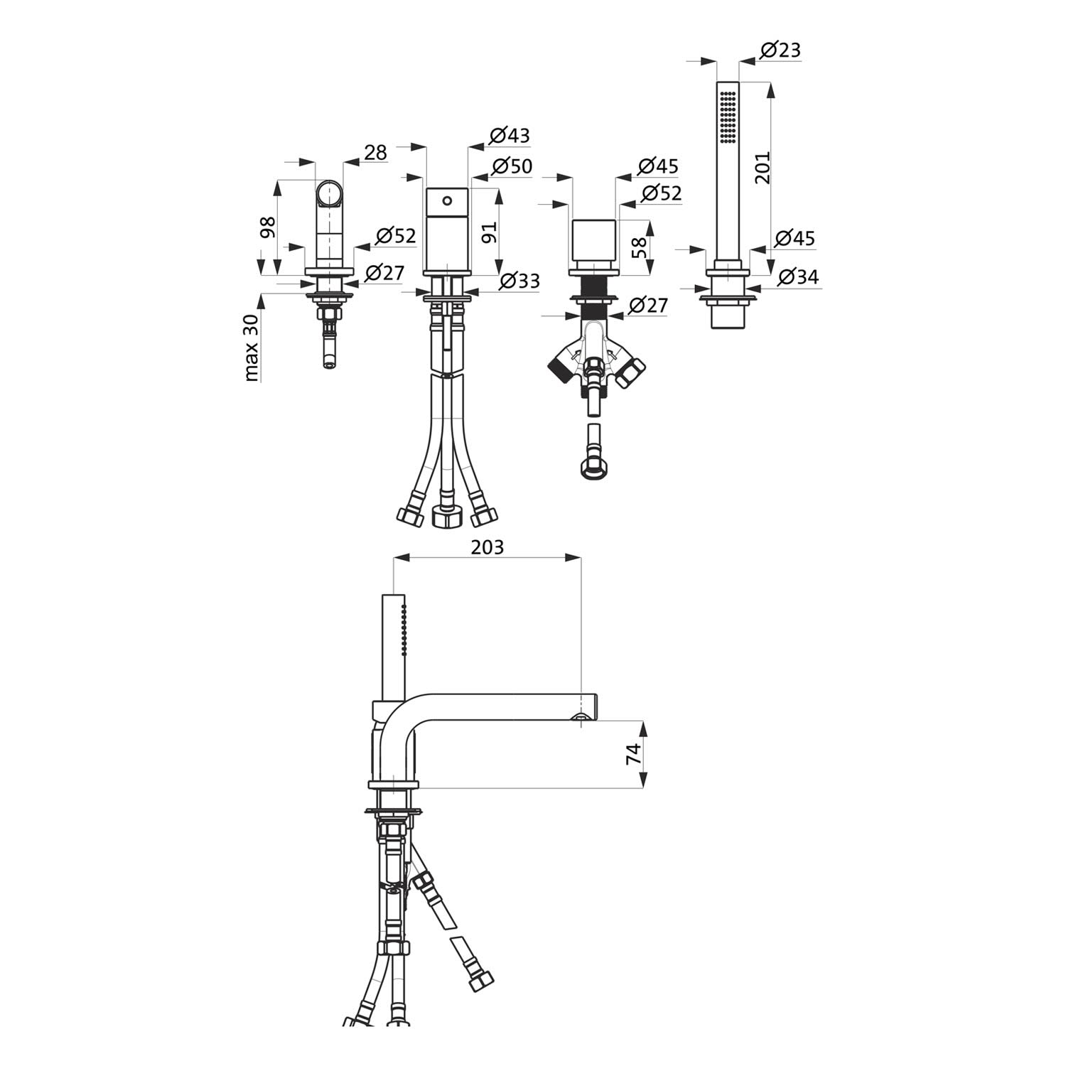 Herzbach DESIGN IX Vierloch-Wannenarmatur für Fliesen- oder Wannenrandmontage