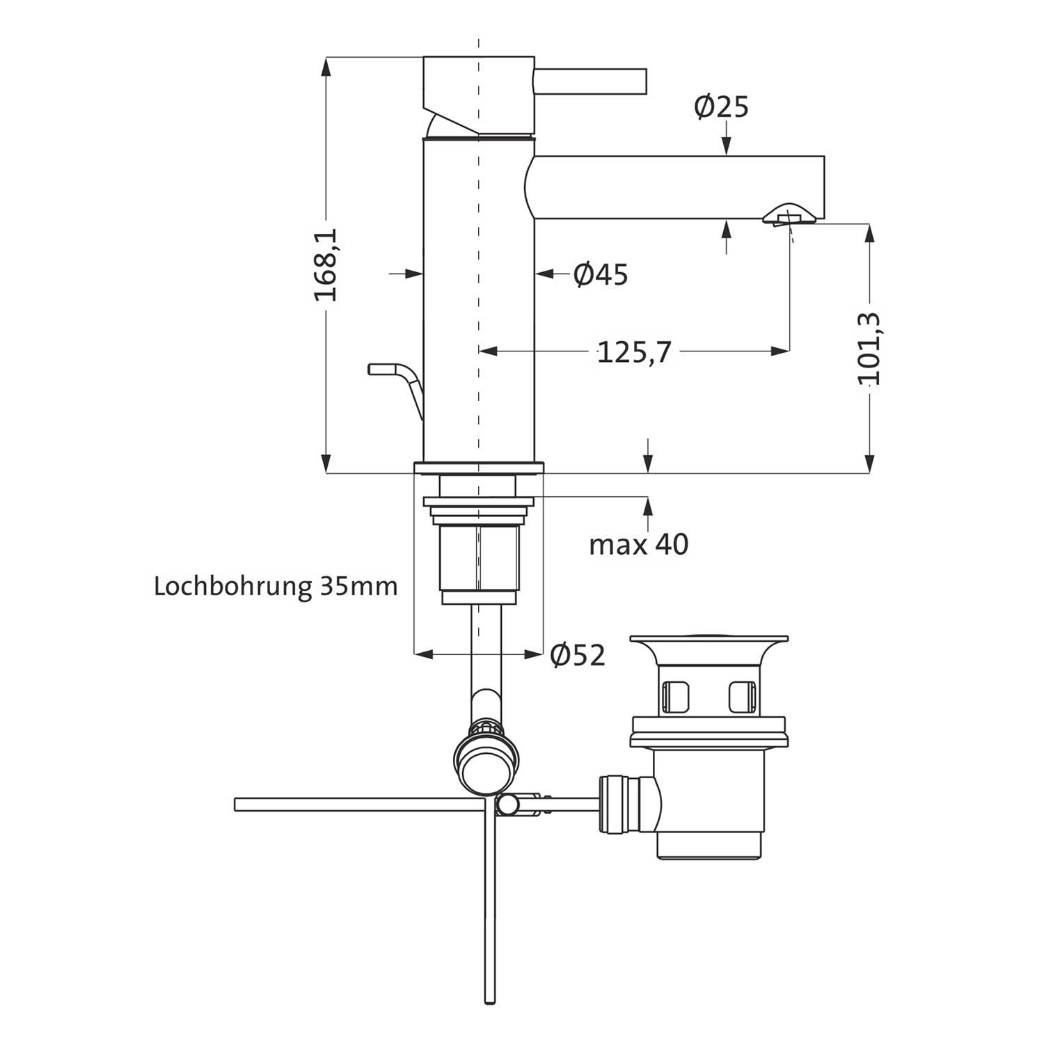 Herzbach DESIGN IX Waschtisch-Einlochbatterie M-Size ECO mit Ablaufgarnitur