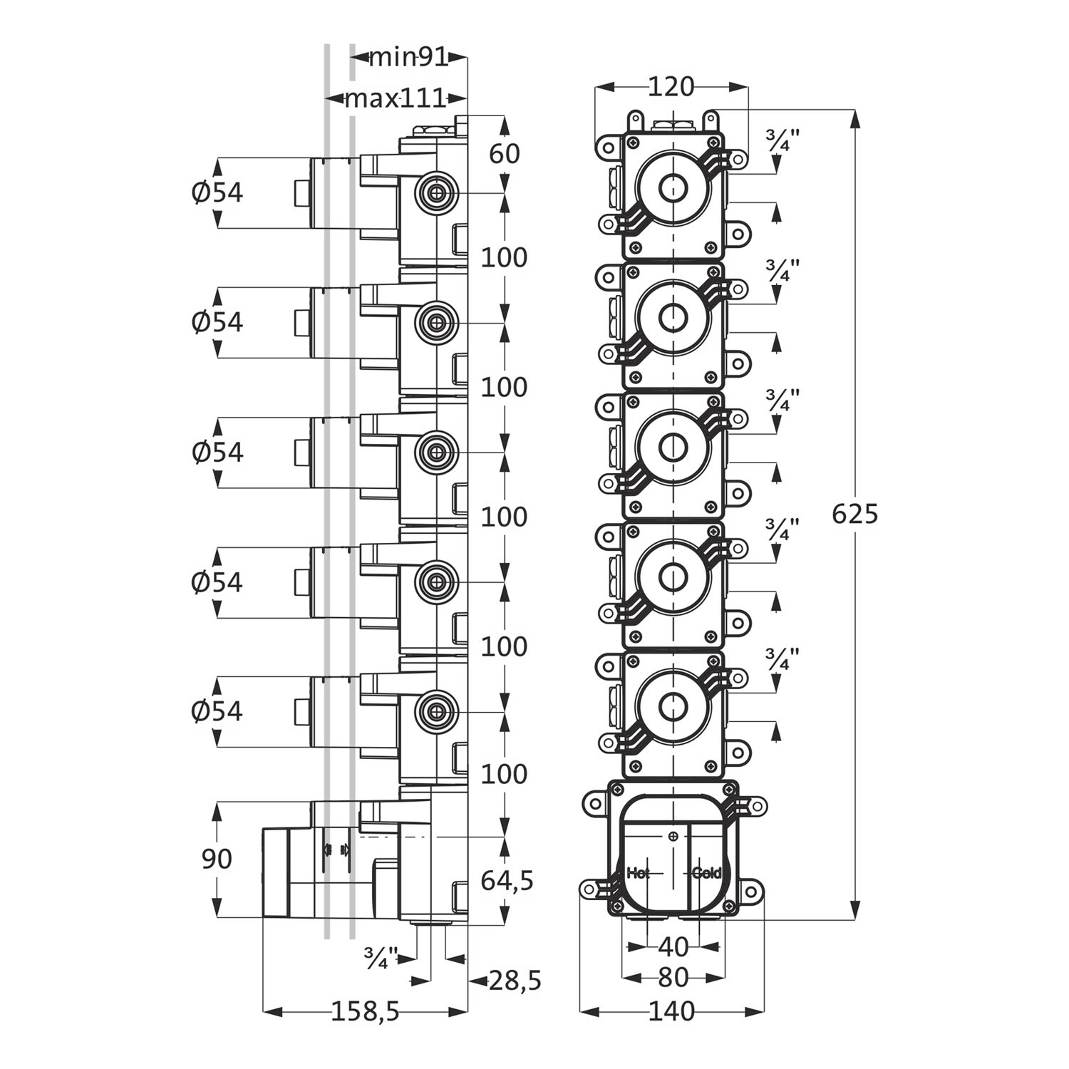 Herzbach LOGIC XL 5 Thermostat Einbaukörper für 5 Verbraucher
