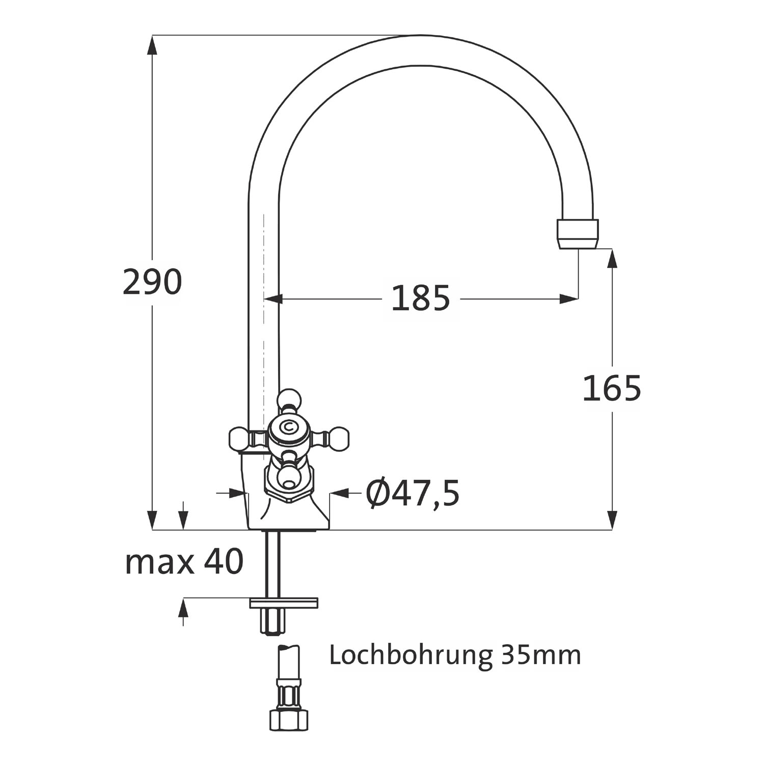 - Höhe Auslaufunterkante 16,5 cm