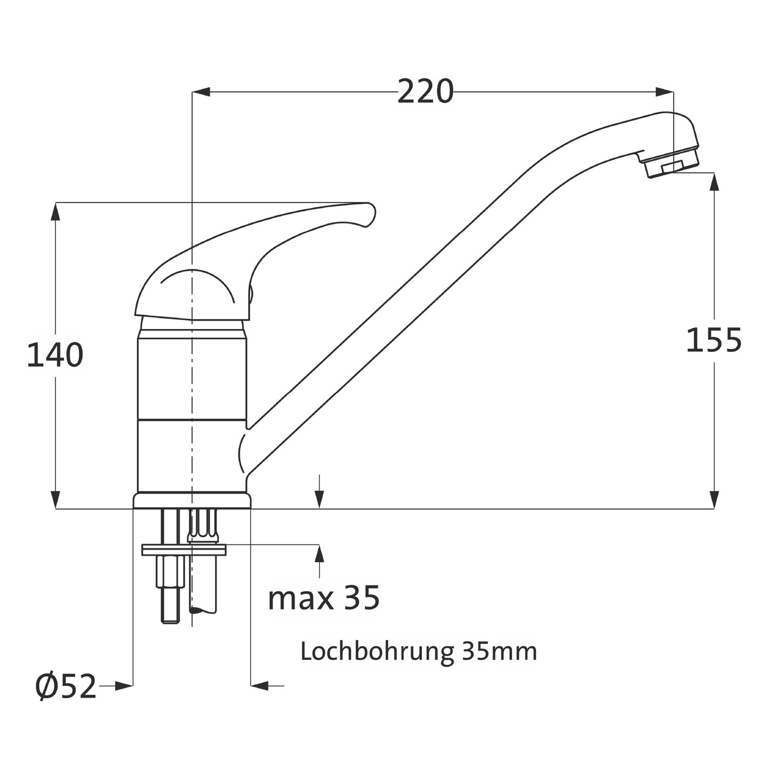 Herzbach LARGO Spültisch-Einlochbatterie, Hochdruck