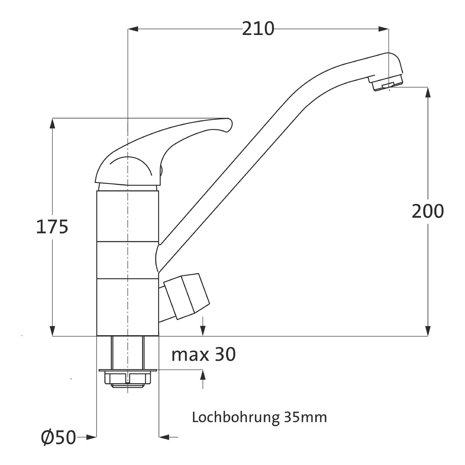 - Höhe Auslaufunterkante 20 cm