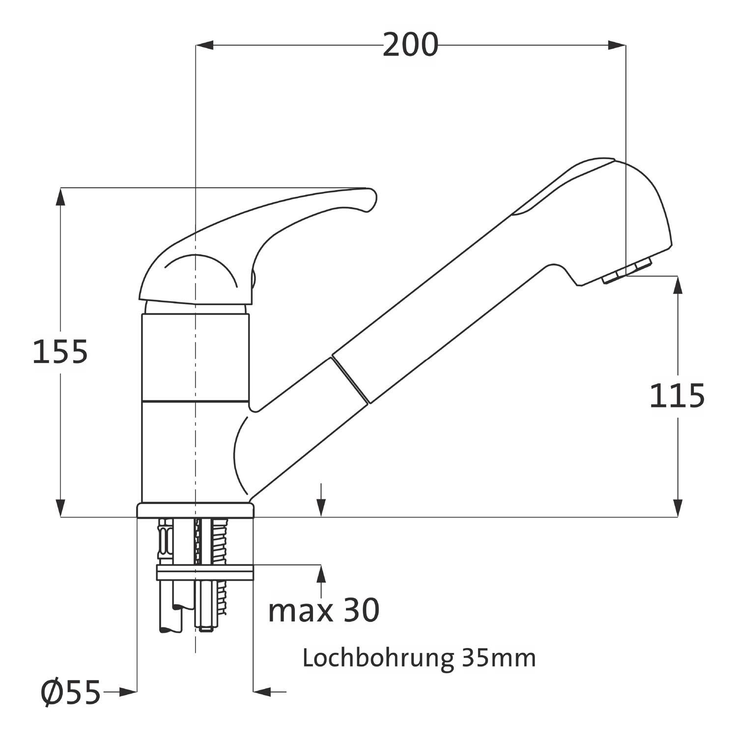 Herzbach LARGO LARGO Spültisch-Einlochbatterie, mit herausziehbaren Brause