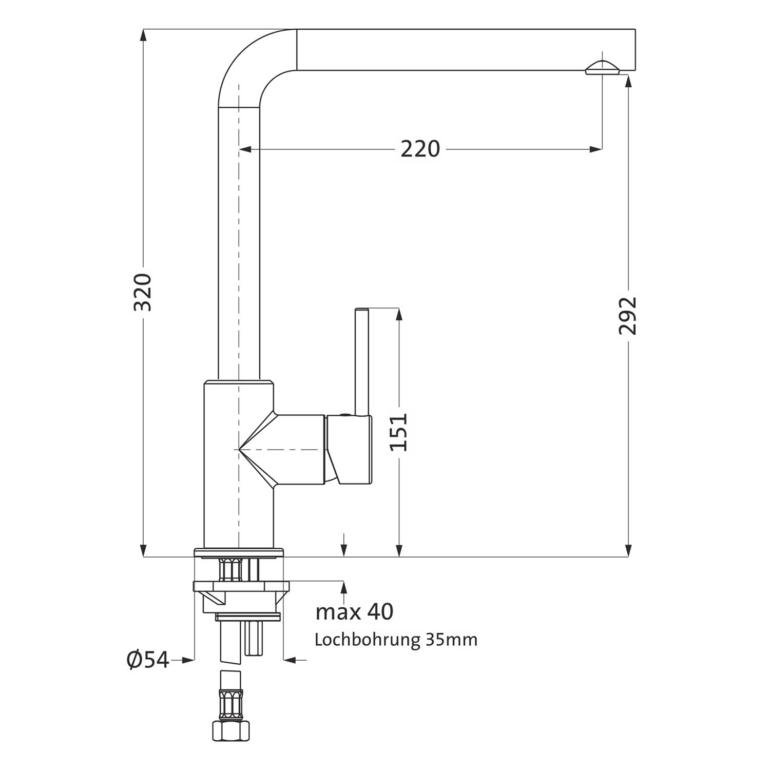 - hoher, 90° gewinkelter Auslauf