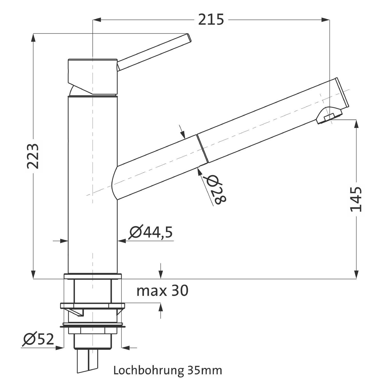 - Höhe Auslaufunterkante 14,5 cm