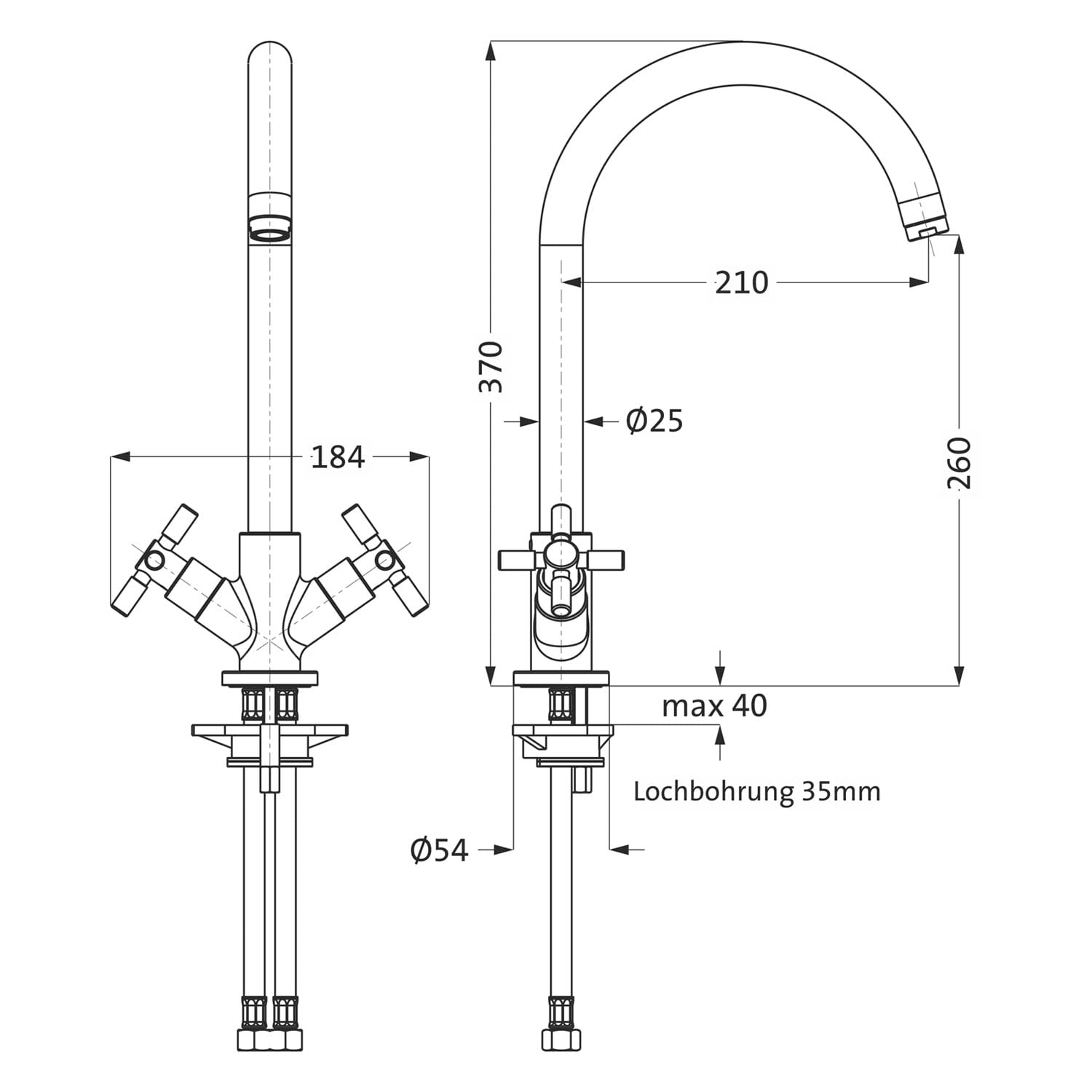 Herzbach STILO Spültisch-Einlochbatterie mit Kreuzgriff-Betätigungen