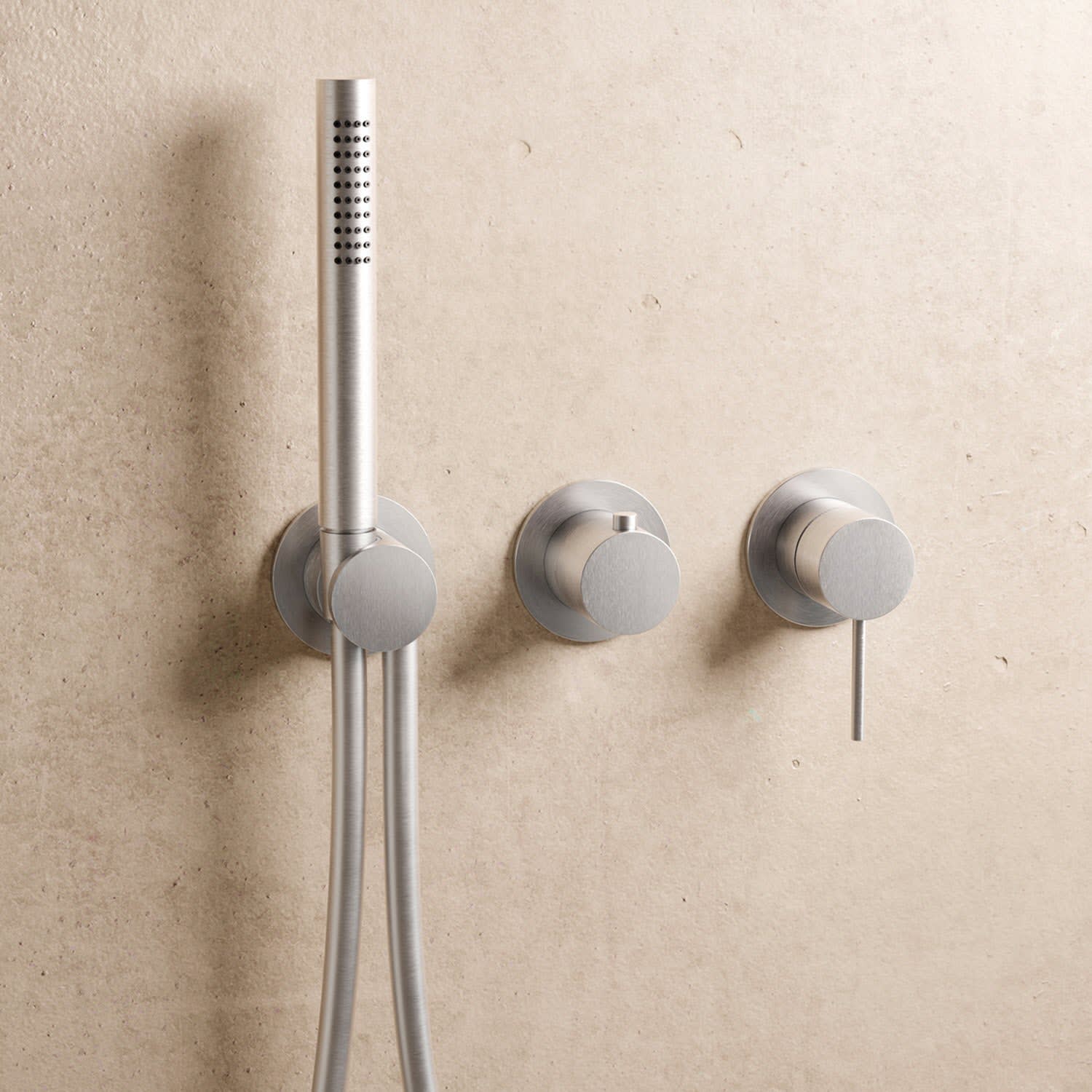 - Wandanschlussbogen mit Brausehalter und verdecktem Schlauchanschluss