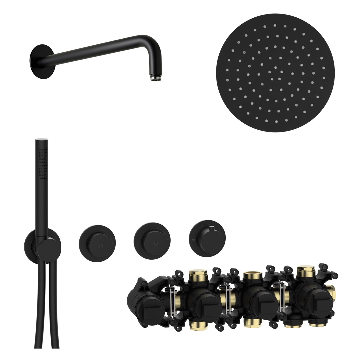 Herzbach MODUL7 BLACK Duschsystem P-RB250 mit PUSH Thermostat und Kopfbrause rund