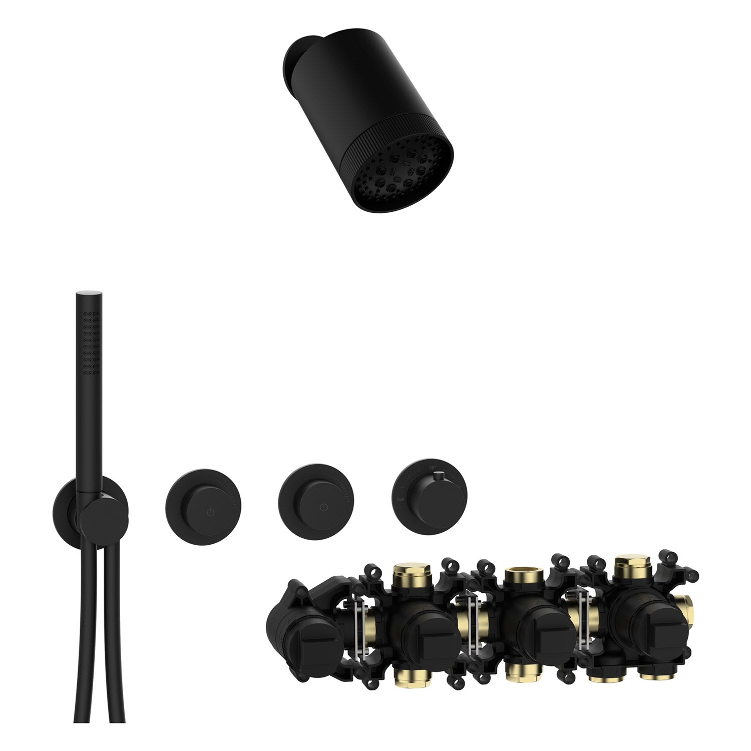Herzbach MODUL7 BLACK Duschsystem P-SP3 mit PUSH Thermostat und Kopfbrause SPOT