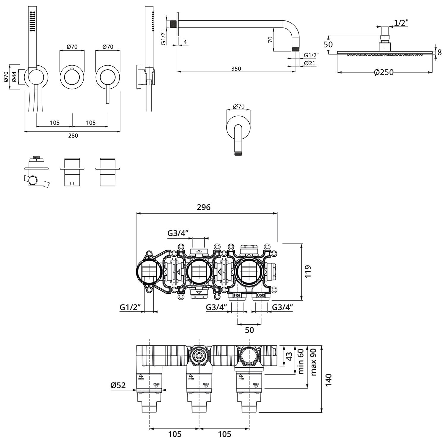 Mit MODUL7 präsentiert Herzbach ein neues und einzigartiges System für hochwertige Badwelten, das sich durch das einheitliche 7 cm Blenden-Design und eine optimale Anpassungsfähigkeit auszeichnen. Das Unterputz-System hat dabei serienmäßig alle abstandsgebenden Elemente mit einem Stichmaß von 10,5 cm bereits integriert. Dadurch gestaltet sich der Einbau nicht nur einfach und mühelos, der Abstand ist auch stets perfekt.