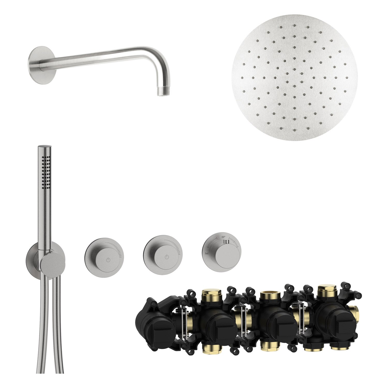 Herzbach MODUL7 IX Duschsystem P-RB250 mit PUSH Thermostat und Kopfbrause rund