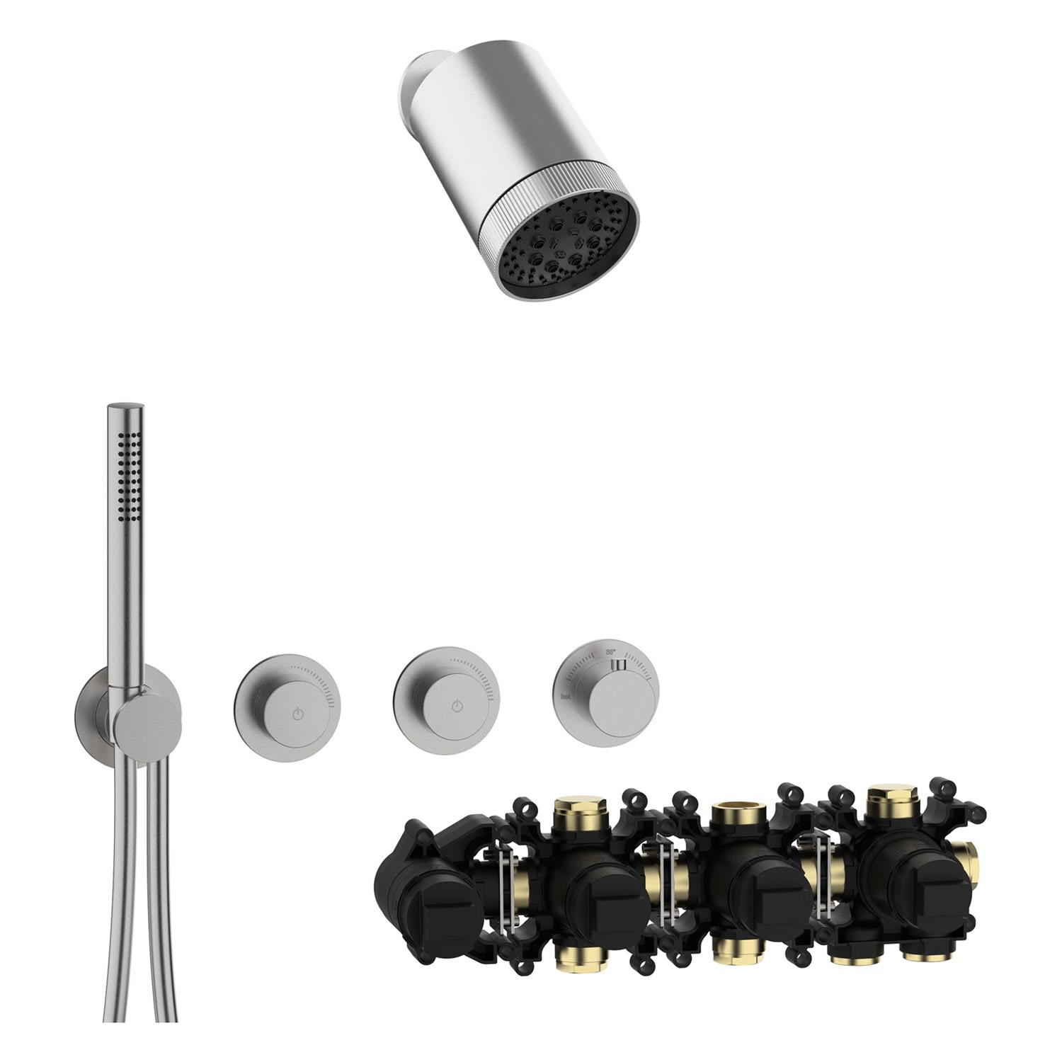 Herzbach MODUL7 IX Duschsystem P-SP3 mit PUSH Thermostat und Kopfbrause SPOT