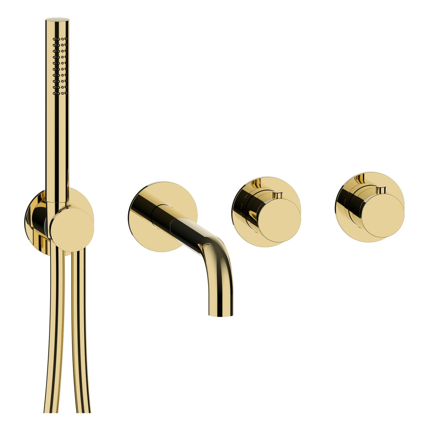 Herzbach MODUL7 PVD GOLD Thermostat Farbset für 2 Verbraucher mit Wanneneinlauf
