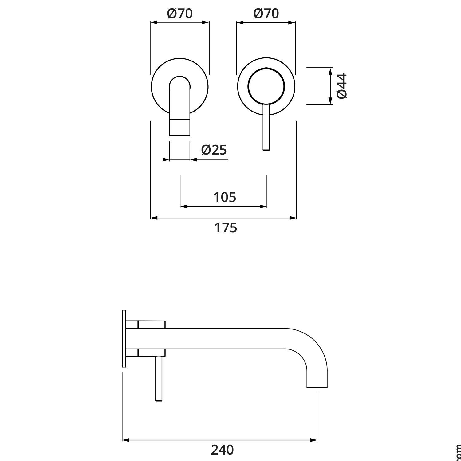 - Wandauslauf mit innenliegendem Lustsprudler für einen weichen, spritzfreien Wasserstrahl