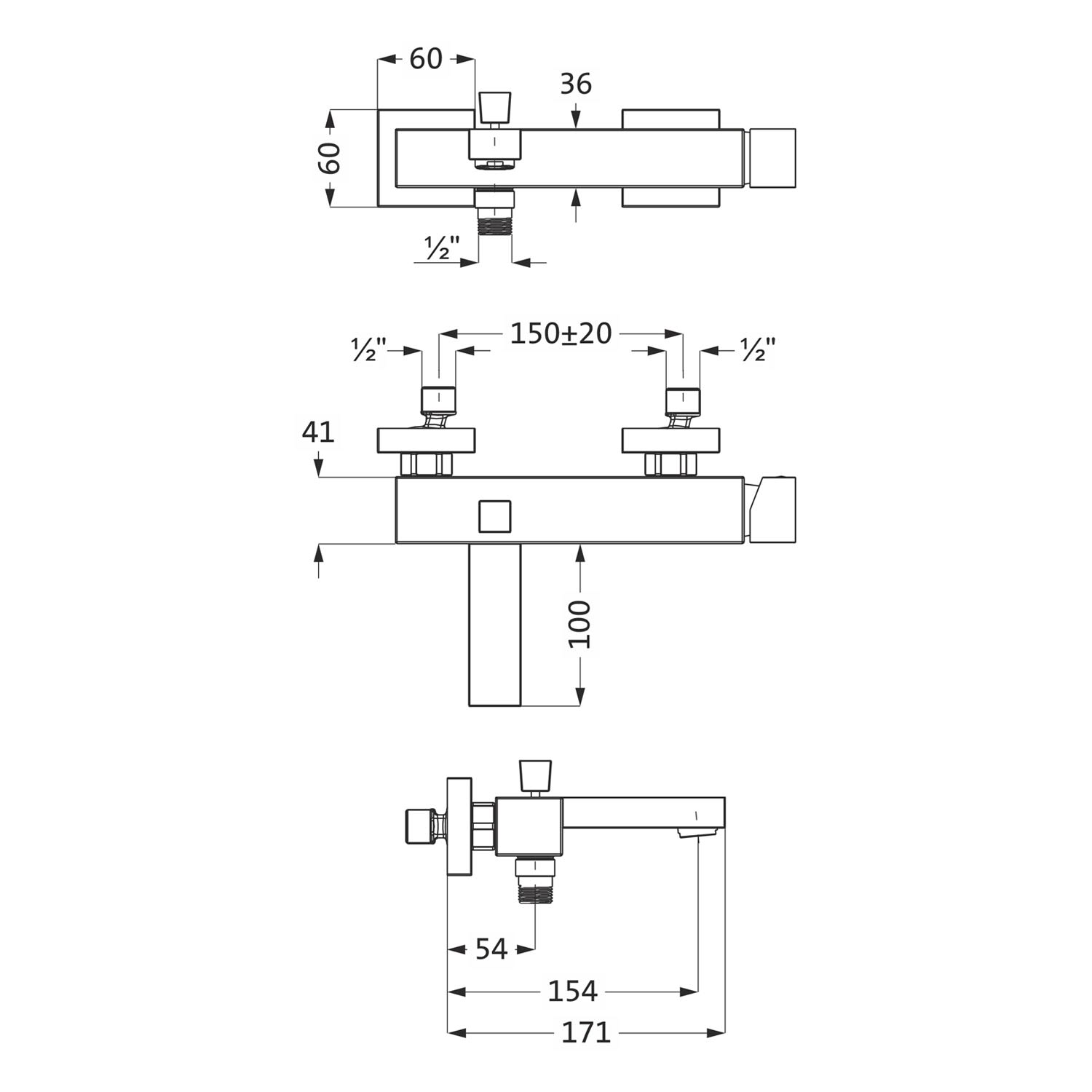 Herzbach NEO CASTELL Wannenfüll- und Brausebatterie Aufputz