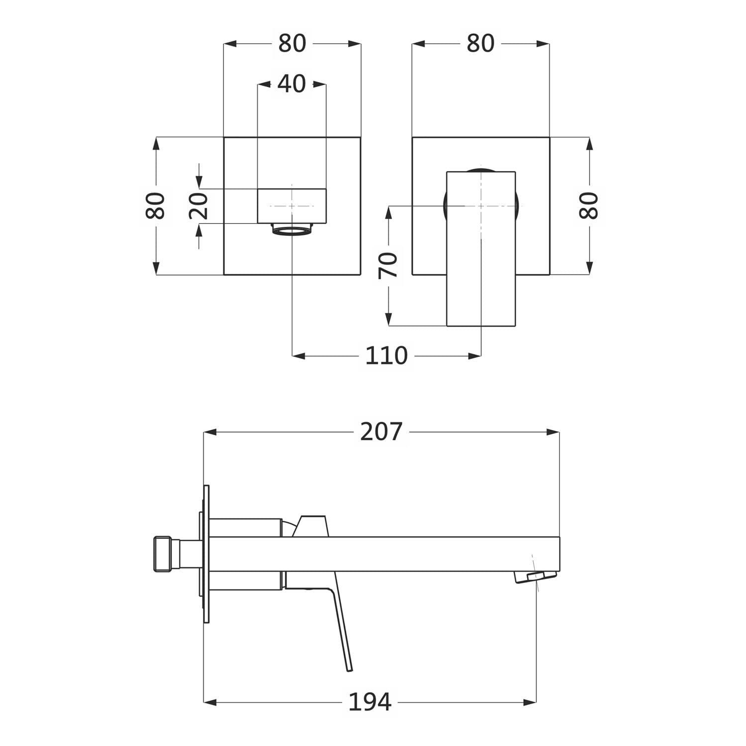 Herzbach NEO CASTELL Waschtisch-Unterputzbatterie Farbset mit 2 Blenden Auslauf 21 cm