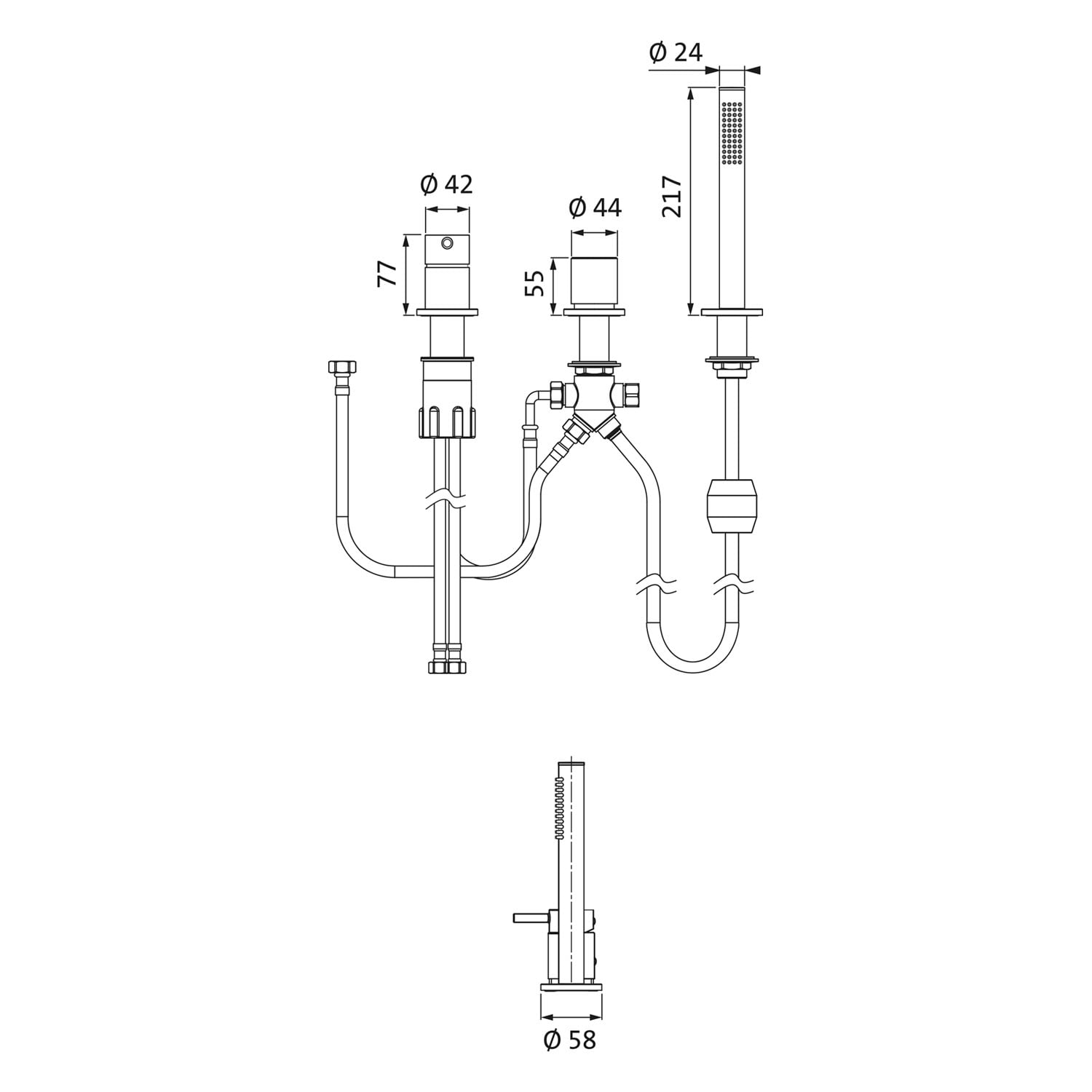 - Flexschlauch mit 1/2" IG zum Anschluss einer externen Wannenbefüllung