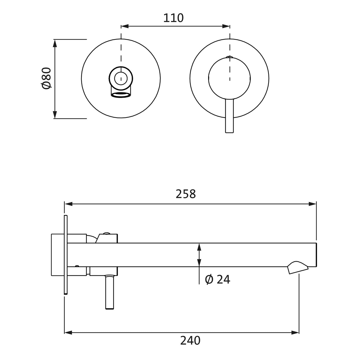 Herzbach SIRO GREY Waschtisch-Unterputzbatterie, Auslauf 24 cm