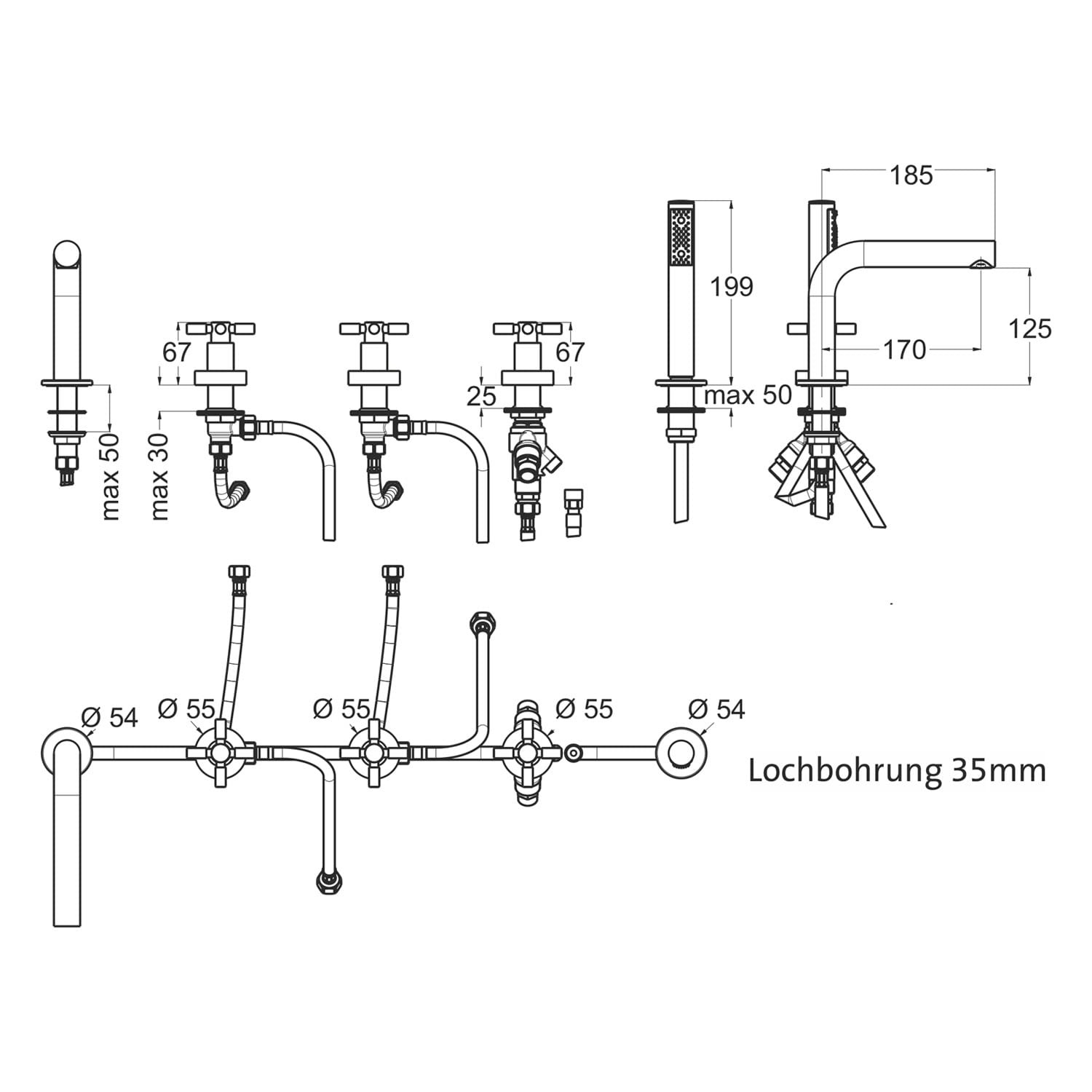 Herzbach STILO 5-Loch-Wannenarmatur für Fliesen- oder Wannenrandmontage