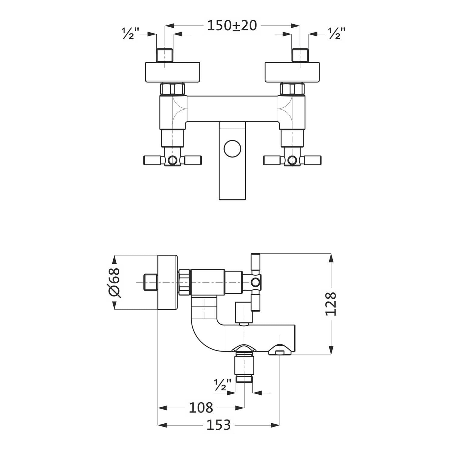 Herzbach STILO Wannenfüll- und Brausebatterie Aufputz, Auslauf unten