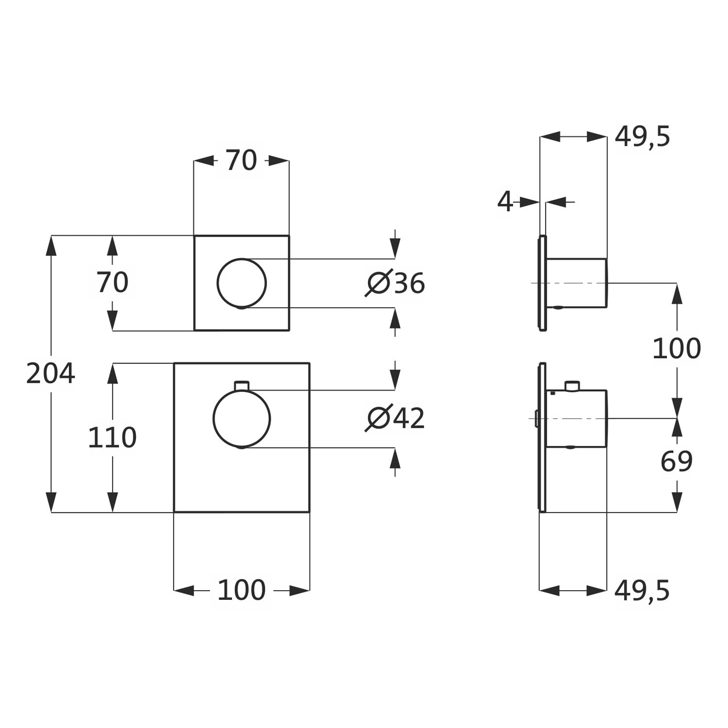 - Thermostatblende eckig 11 cm x 10 cm