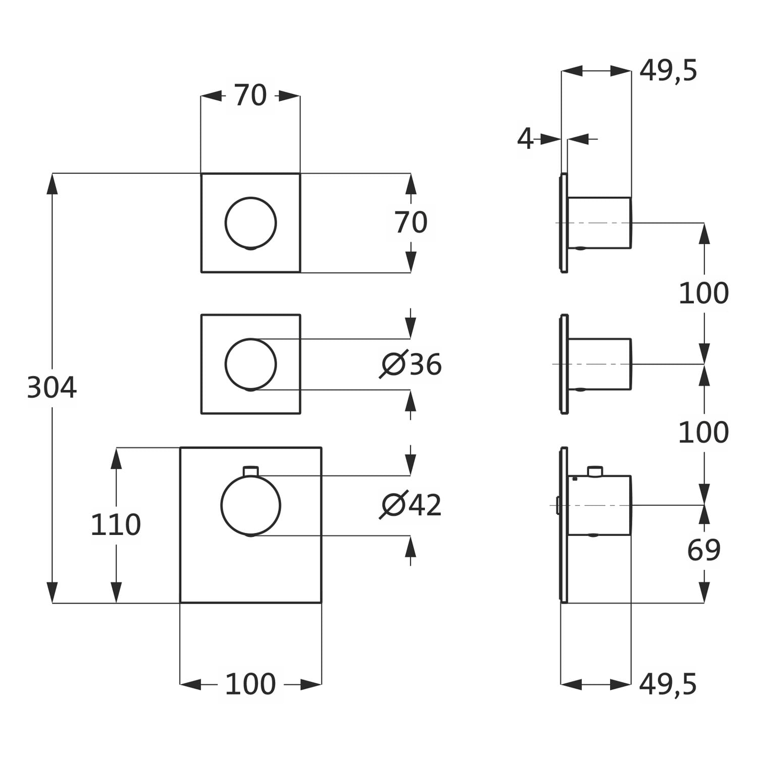 - Thermostatblende eckig 11 cm x 10 cm