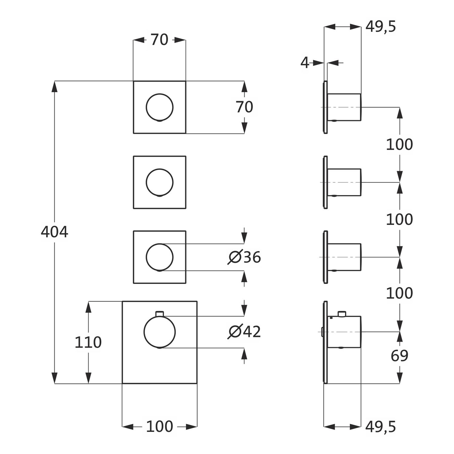- Thermostatblende eckig 11 cm x 10 cm