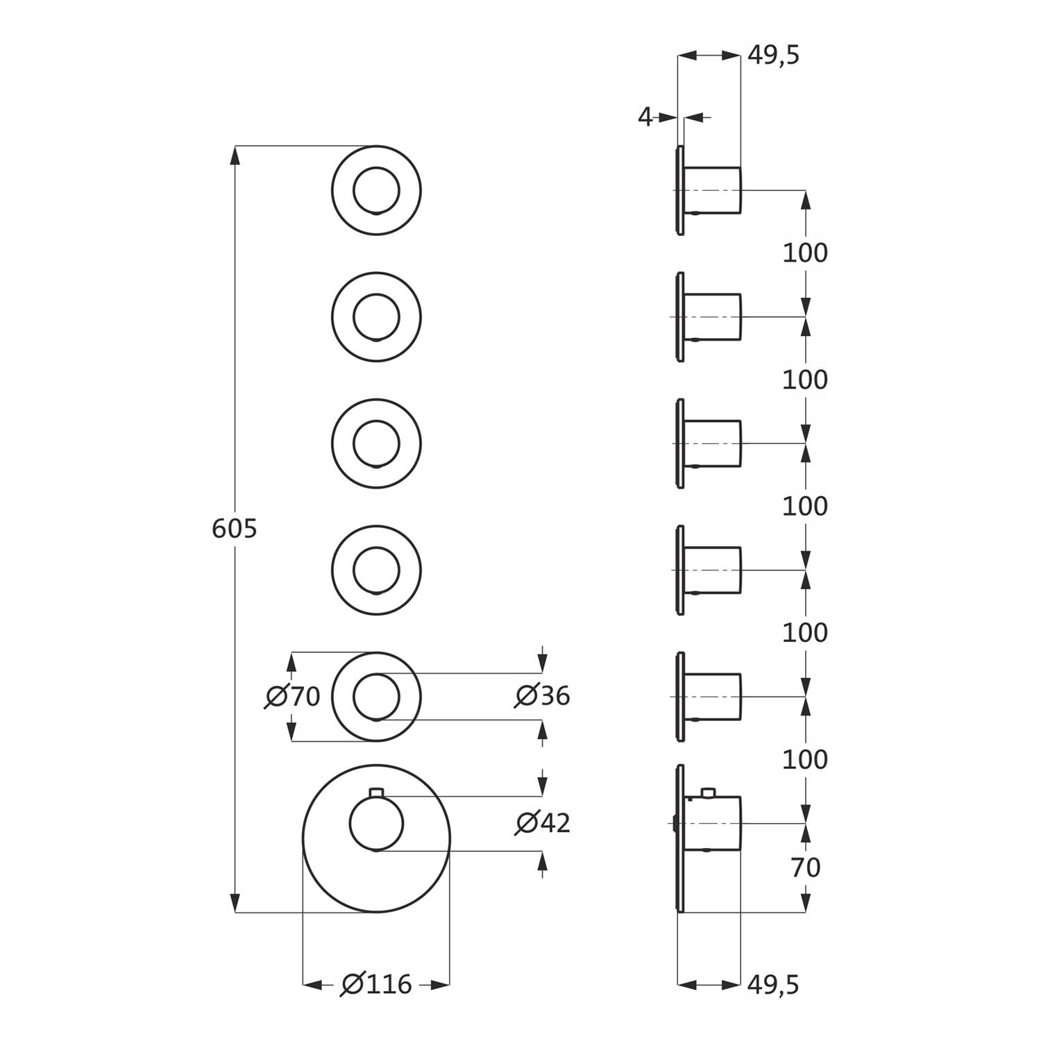 - Thermostatblende rund Ø 11,6 cm