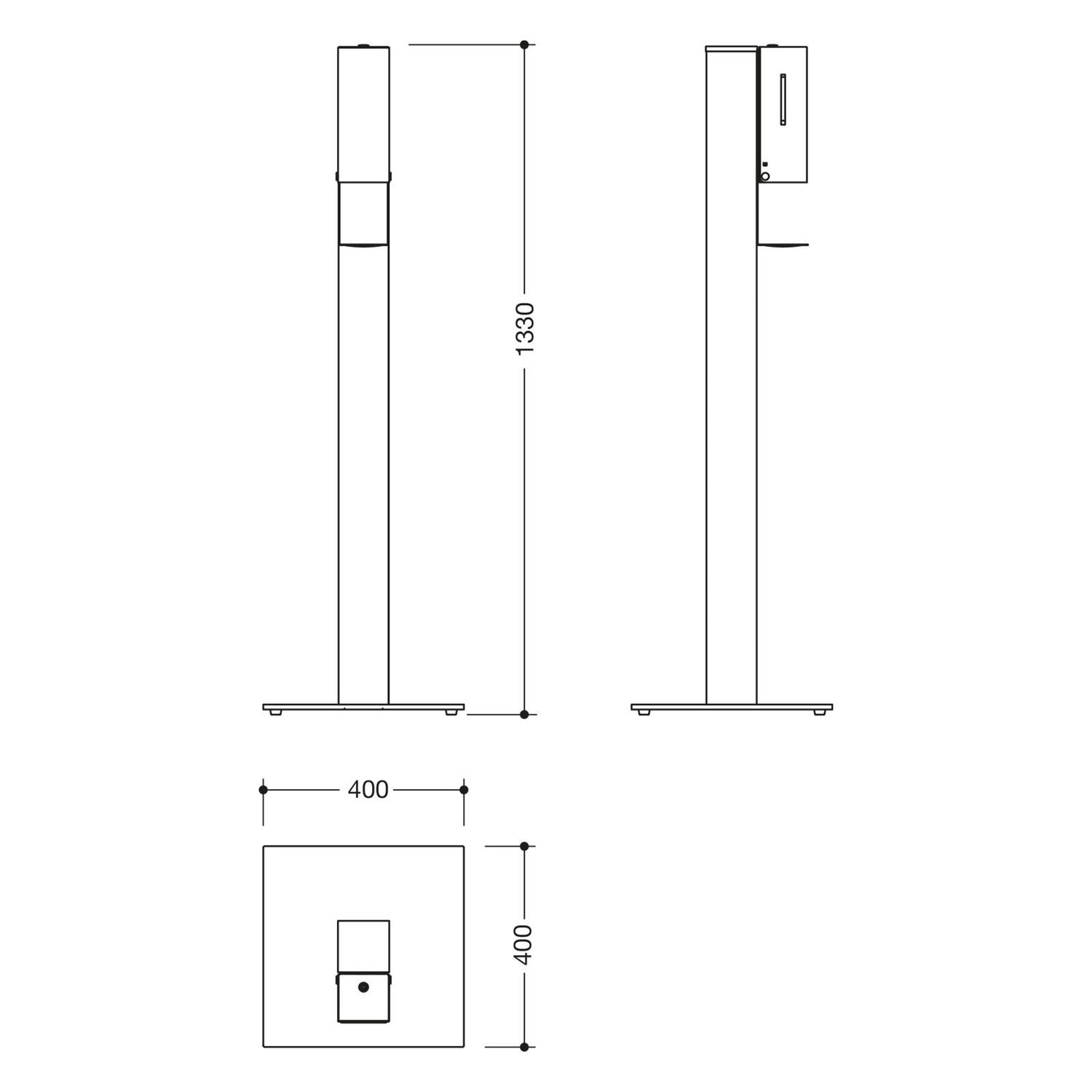 - Säule mit kantigem Grundkörper aus Aluminium, mit Stahlfuß, pulverbeschichtet