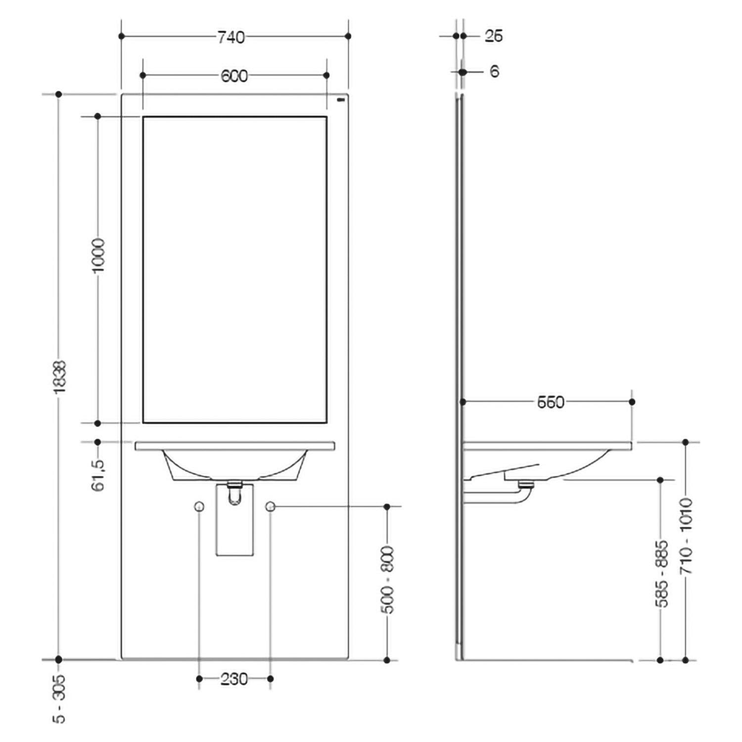 - für das elektrisch um 30 cm höhenverstell. Vorwandelement Waschtisch S50.01.01000 (separat bestellen)