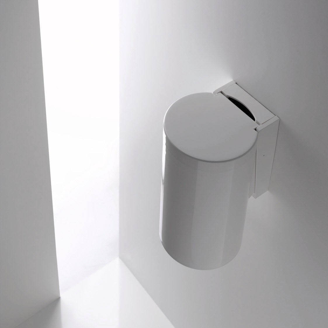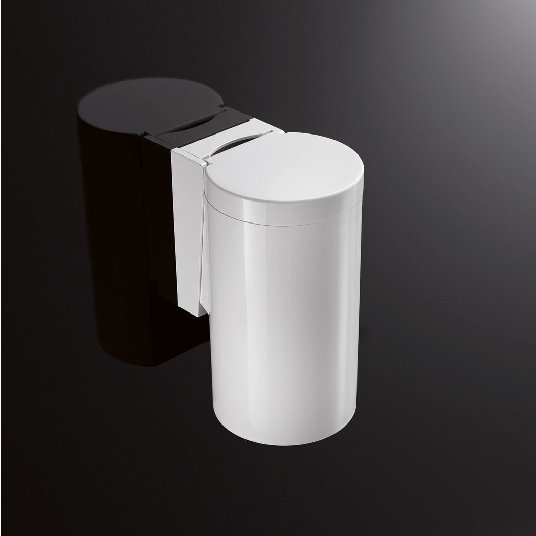- der Deckel kann durch leichten Druck mit dem Knie gegen den Behälter oder mit der Hand geöffnet werden