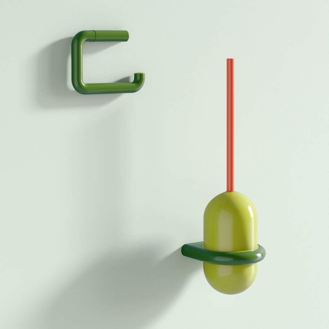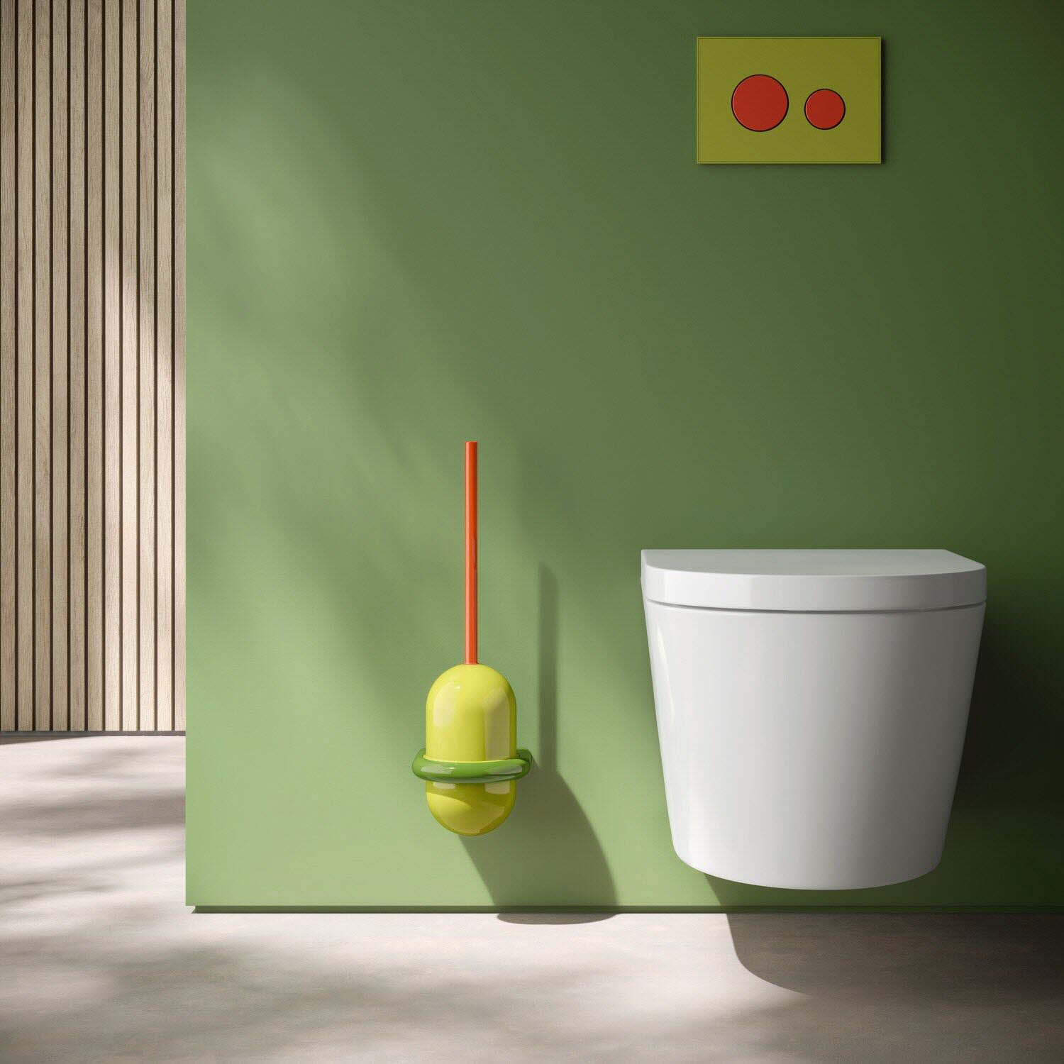 - Behälter: 74 (apfelgrün), Halter: 72 (maigrün), Bürstenstiel:36 (koralle)