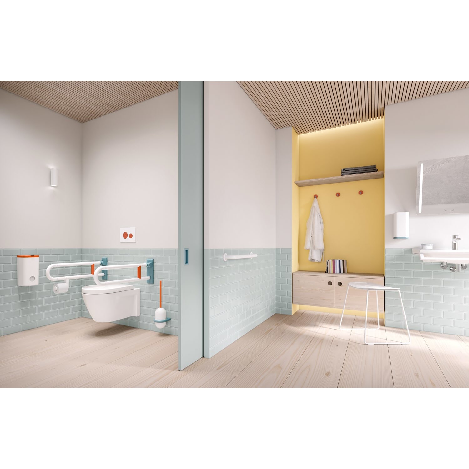 Als Marktführer im Bereich Barrierefrei setzt HEWI Maßstäbe. Bereits in den Achtzigerjahren entwickelte HEWI mit Serie 801 die erste barrierefreie Serie in Deutschland. Seitdem wurde die Serie kontinuierlich weiterentwickelt und hat sich als Klassiker im Sanitärraum etabliert. Ergänzt wird Serie 801 durch Sanitär-Accessoires der Serie 477. Serie 477/801 zeichnet sich durch eine angenehme Haptik aus. Der Querschnitt des Rundrohrdesigns ist optimal an die Hand angepasst. Die Oberfläche aus Polyamid fühlt sich angenehm warm an. Die Produkte sind so gestaltet, dass sie Bewegungsabläufe unterstützen und Einschränkungen kompensieren. Serie 477/801 ist in allen HEWI Farben erhältlich und ermöglicht so viele Gestaltungsoptionen.