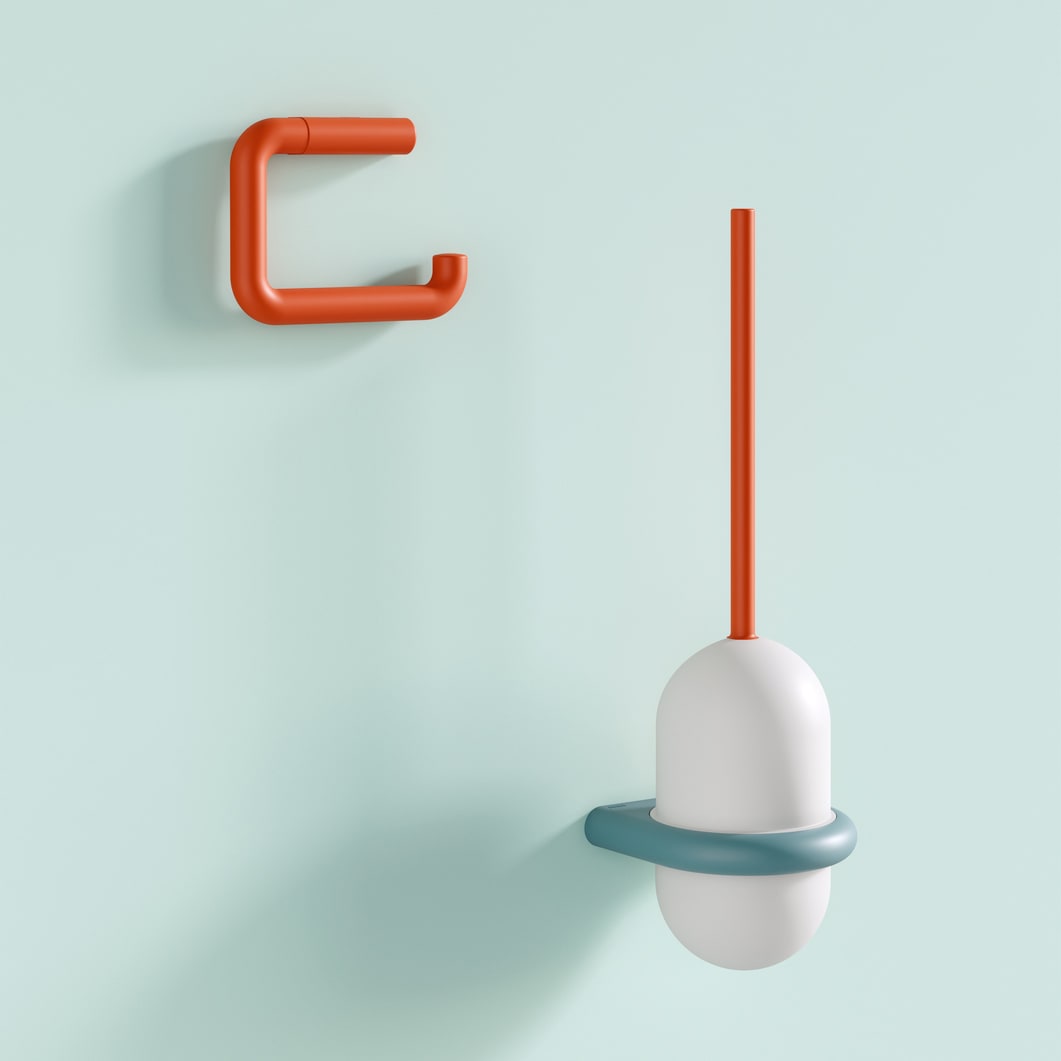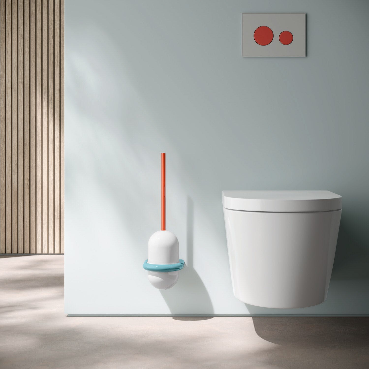 - Behälter: 99 (reinweiß), Halter: 55 (aquablau), Bürstenstiel: 36 (koralle)