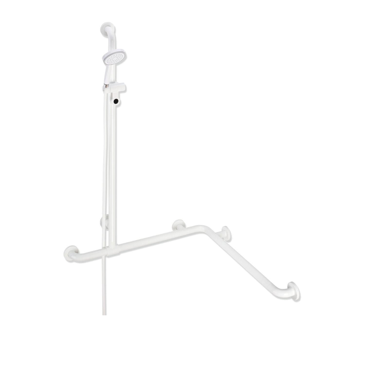 HEWI Serie 477/801 Duschhandlauf mit verschiebbarer Brausehalterstange incl. Handbrause und Brauseschlauch