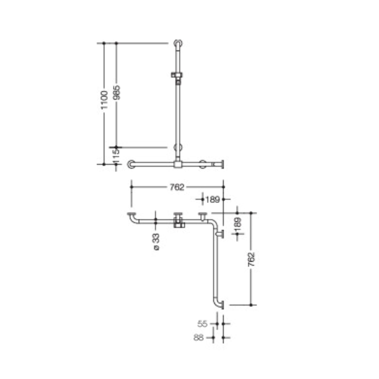 - senkrechte Länge 1100 mm, waagerechte Längen (Eckmontage) je 762 mm