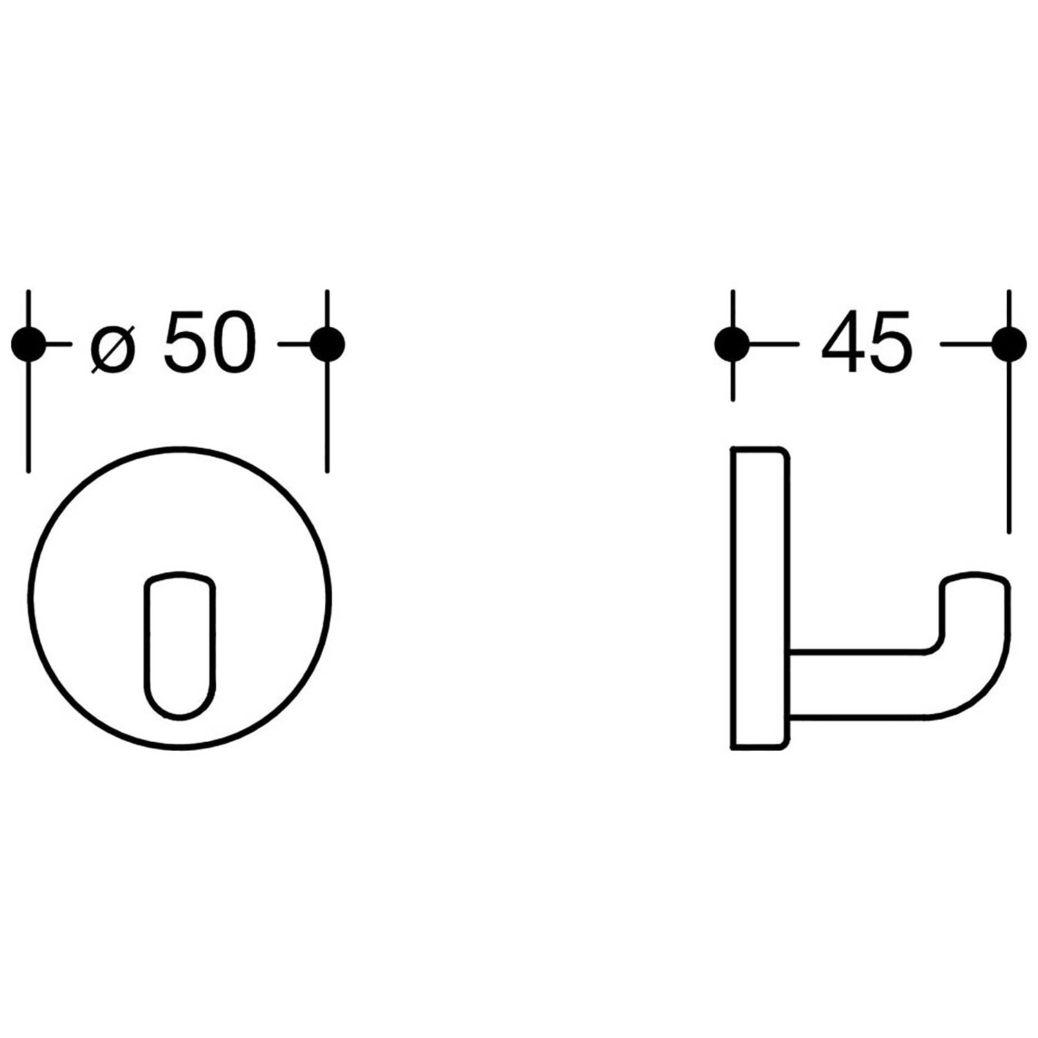 - rechtwinklig gebogener, zylindrischer Haken mit Befestigungsrosette