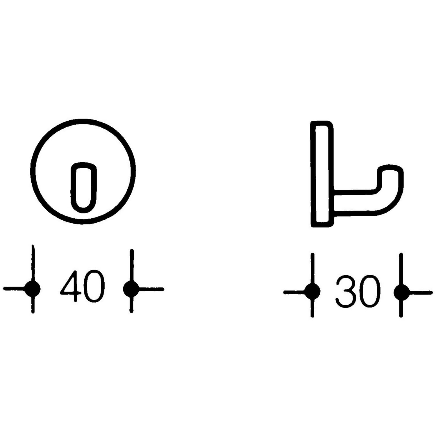 - rechtwinklig gebogener, zylindrischer Haken mit Befestigungsrosette
