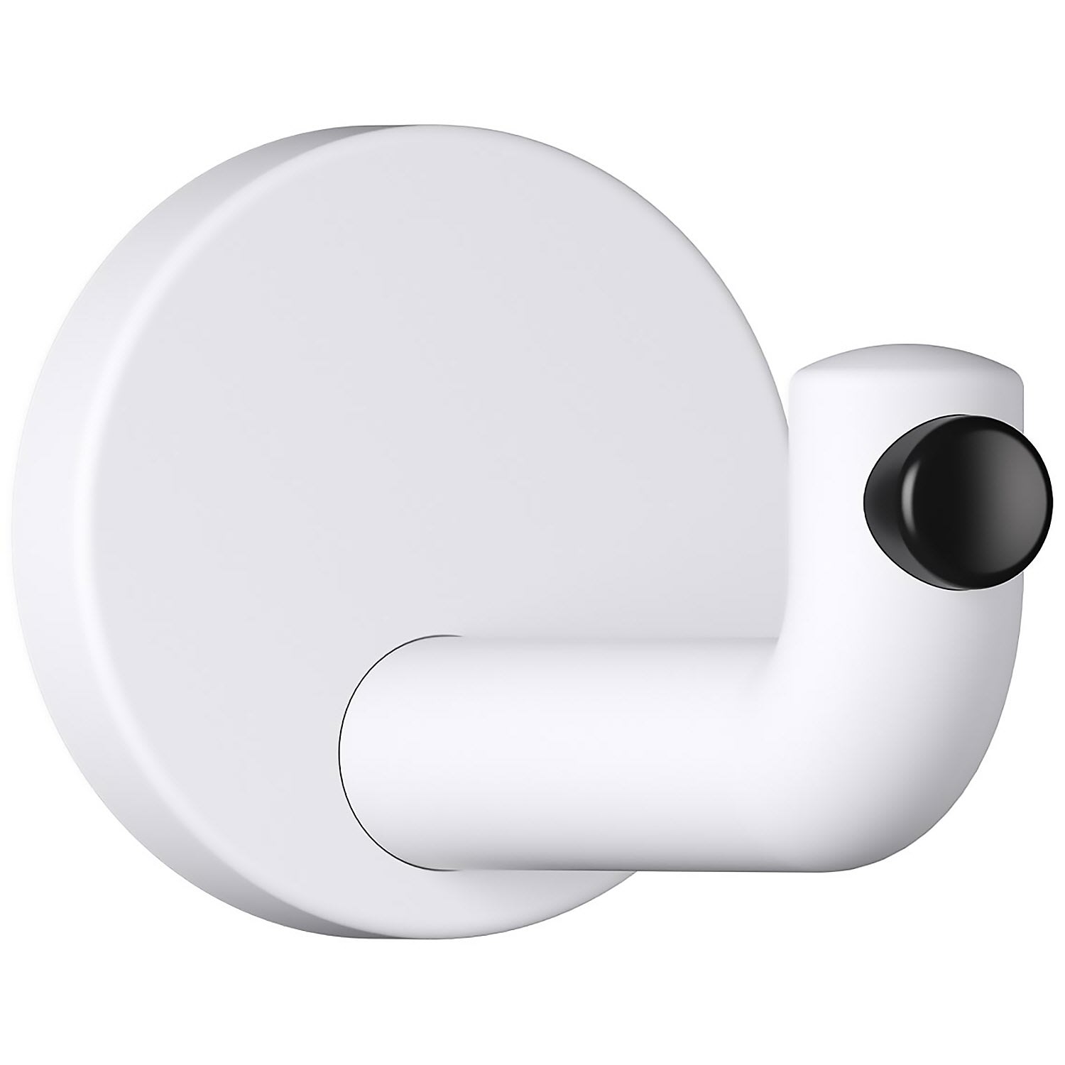 - rechtwinklig gebogener, zylindrischer Haken mit Befestigungsrosette und schwarzem Türpuffer