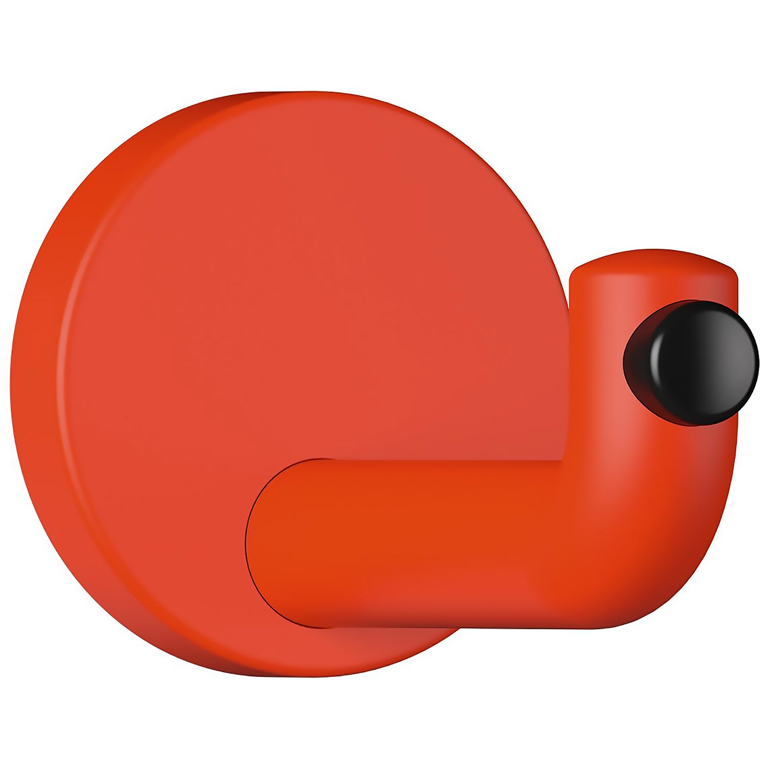 - rechtwinklig gebogener, zylindrischer Haken mit Befestigungsrosette und schwarzem Türpuffer