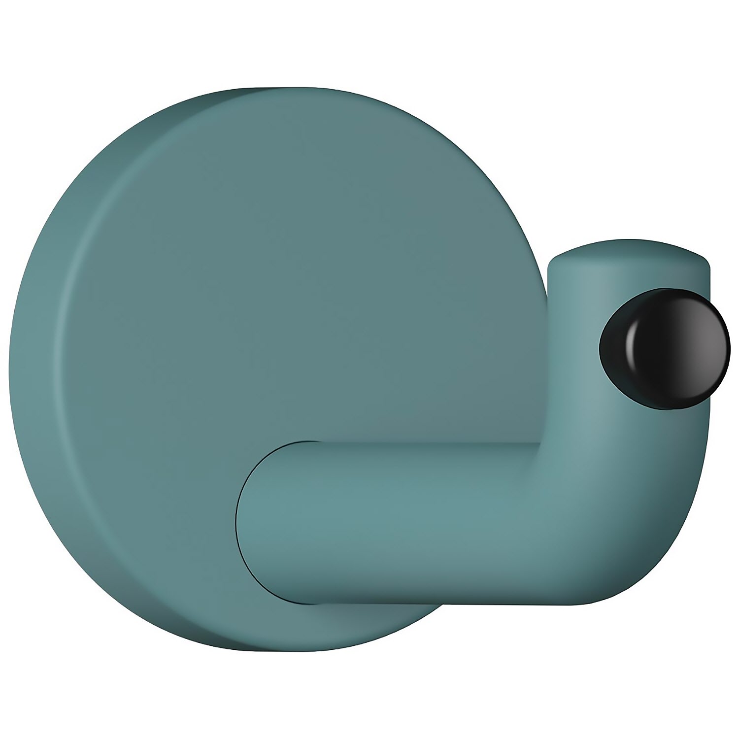 - rechtwinklig gebogener, zylindrischer Haken mit Befestigungsrosette und schwarzem Türpuffer