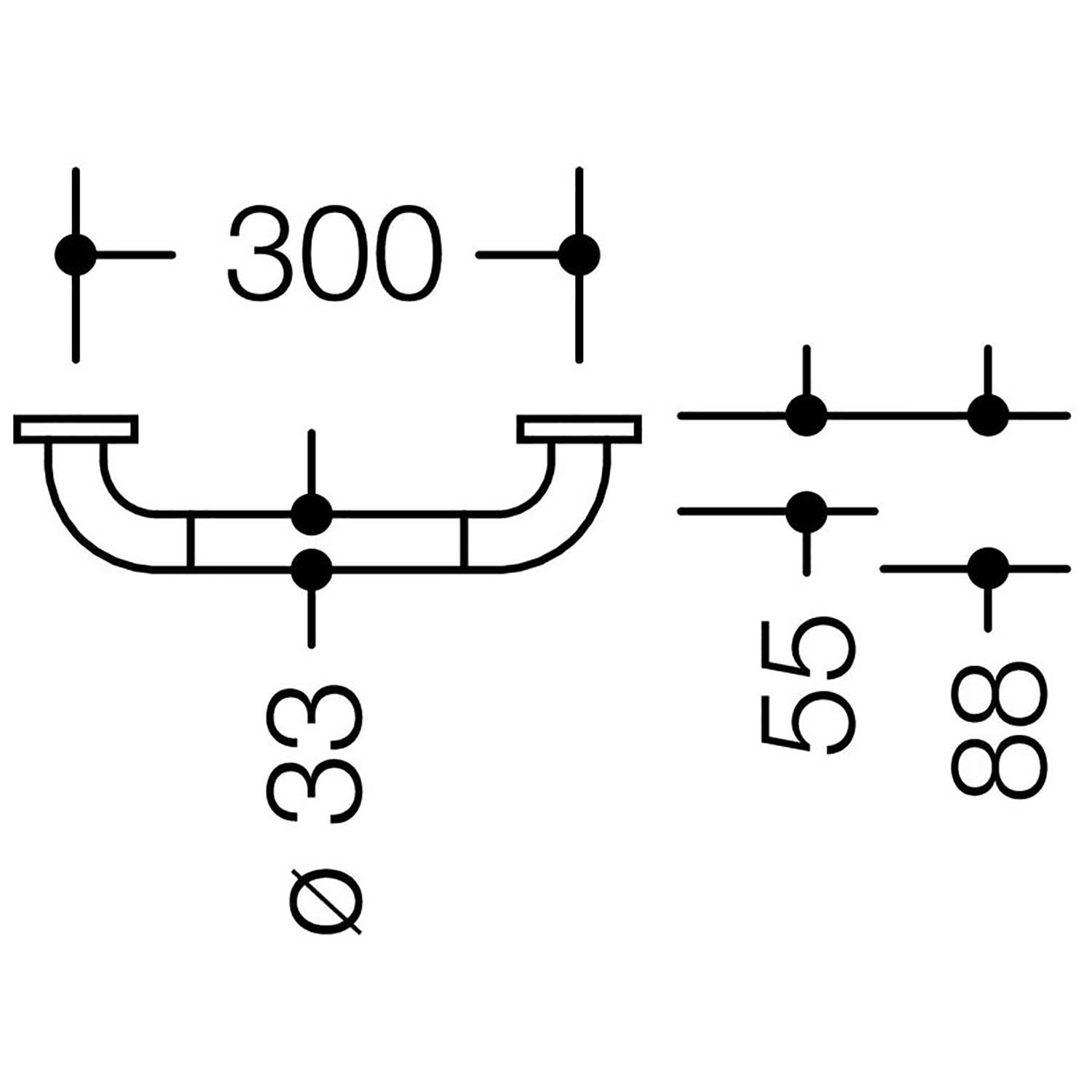 - an den Enden im rechten Winkel abgebogene Stange mit Stahl-Befestigungsrosetten