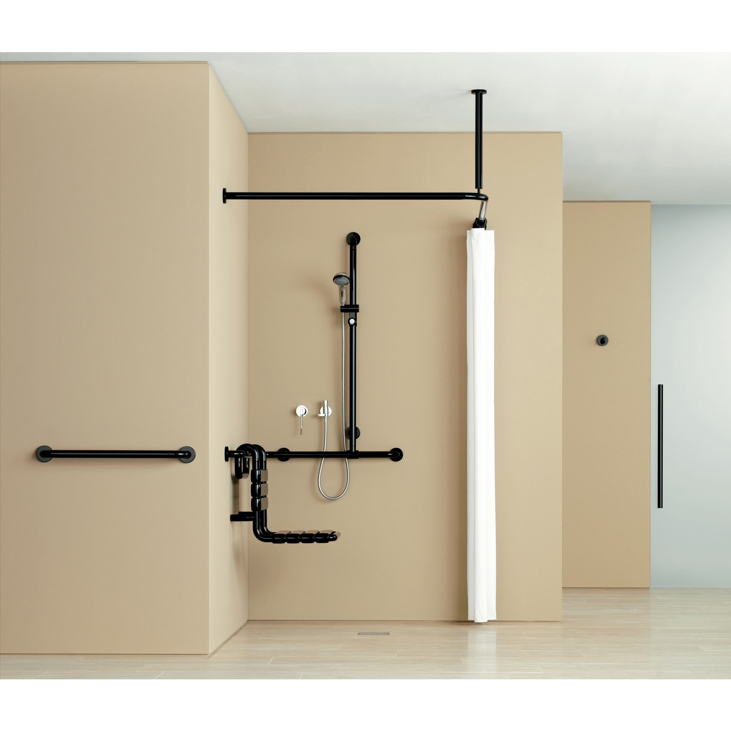 - Montage an der Wand mit wandspezifischem Befestigungsmaterial und Rosetten von HEWI