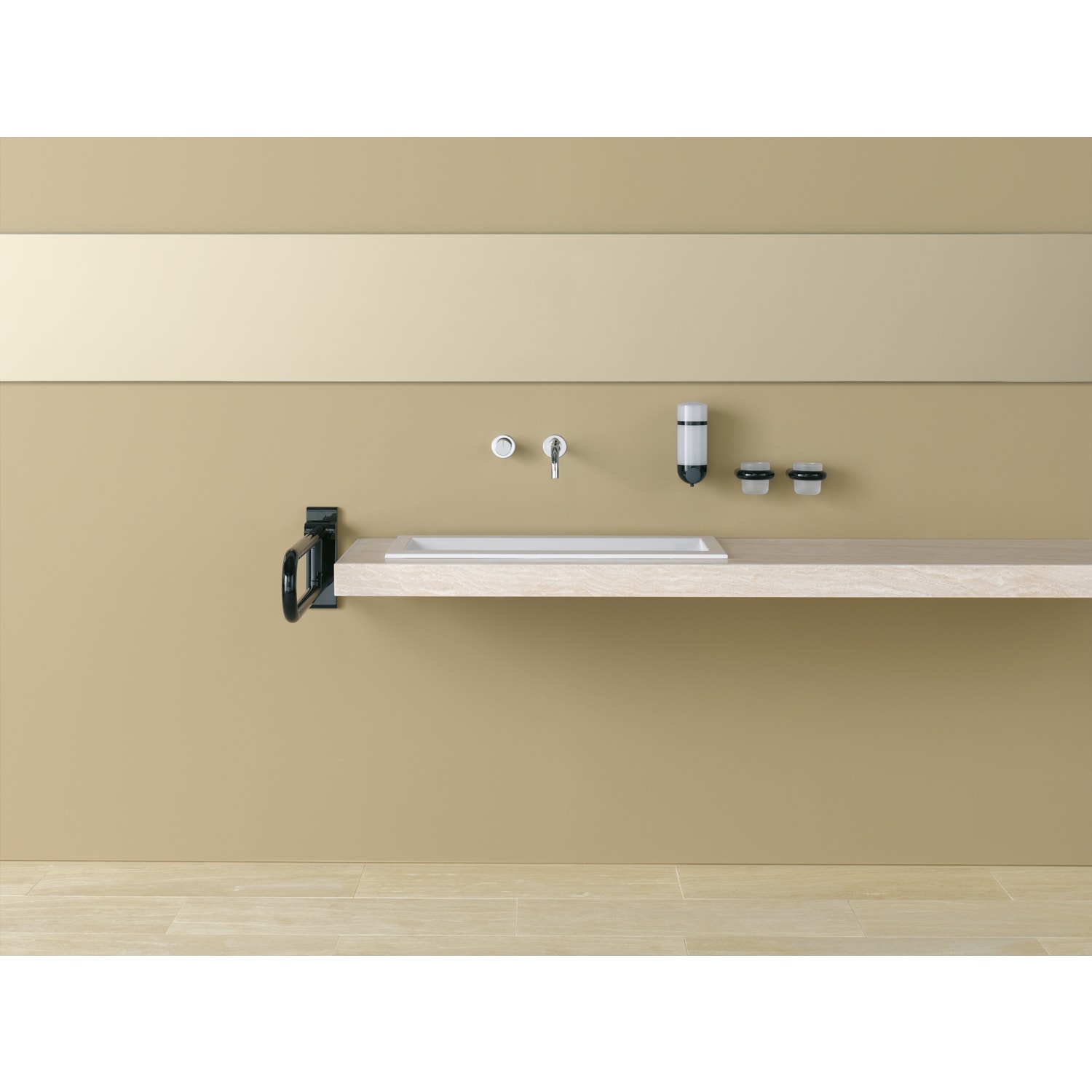 - WC-Papierhalter 801.50.010 und 801.50.011, WC-Spülauslösung (Funk) 801.50.060 und Bodenstützen 950.50.021XA und 950.50.023XA nachrüstbar