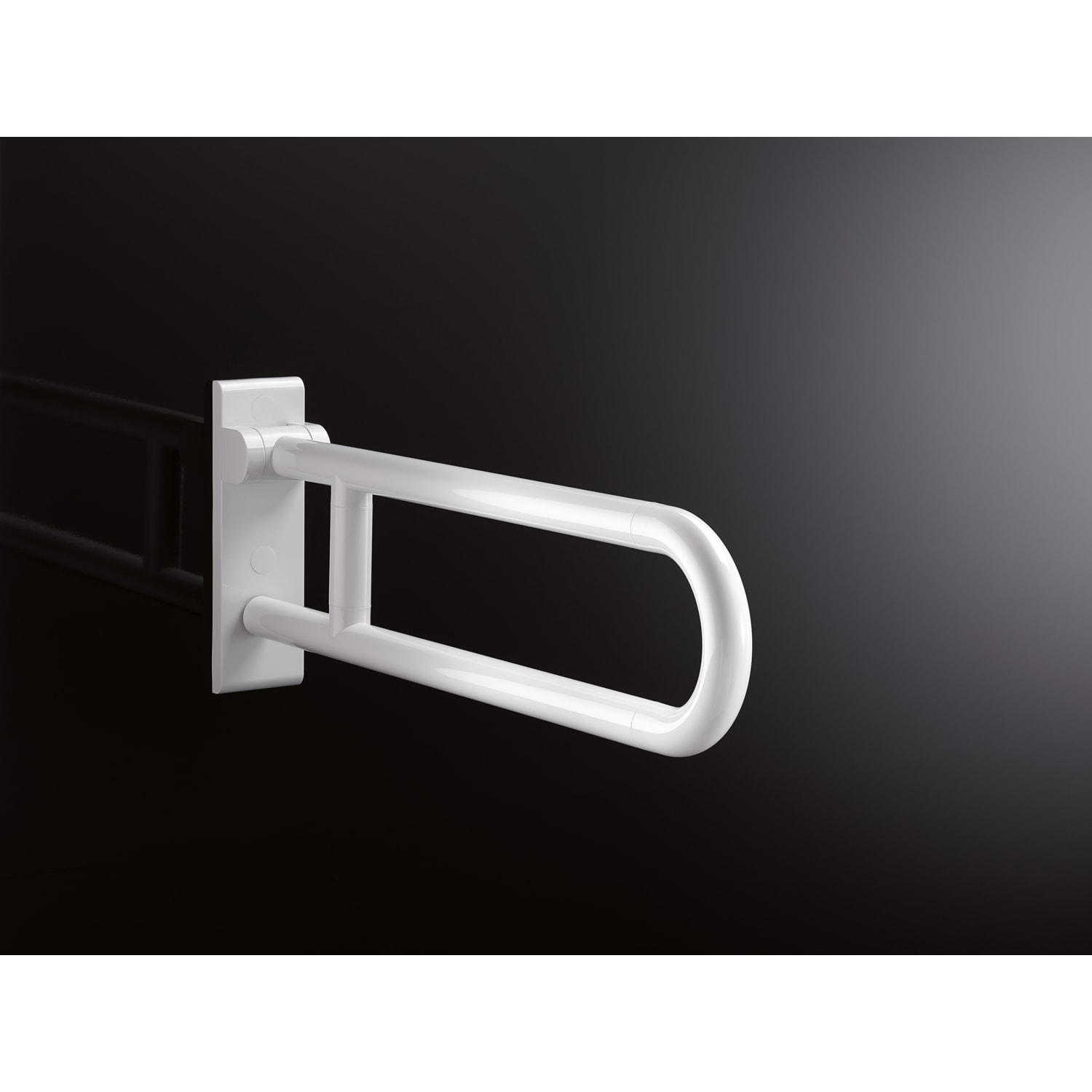 - kann nach oben und gebremst nach unten geklappt und in hochgeklappter Stellung nach links oder rechts zur Wand gedreht werden