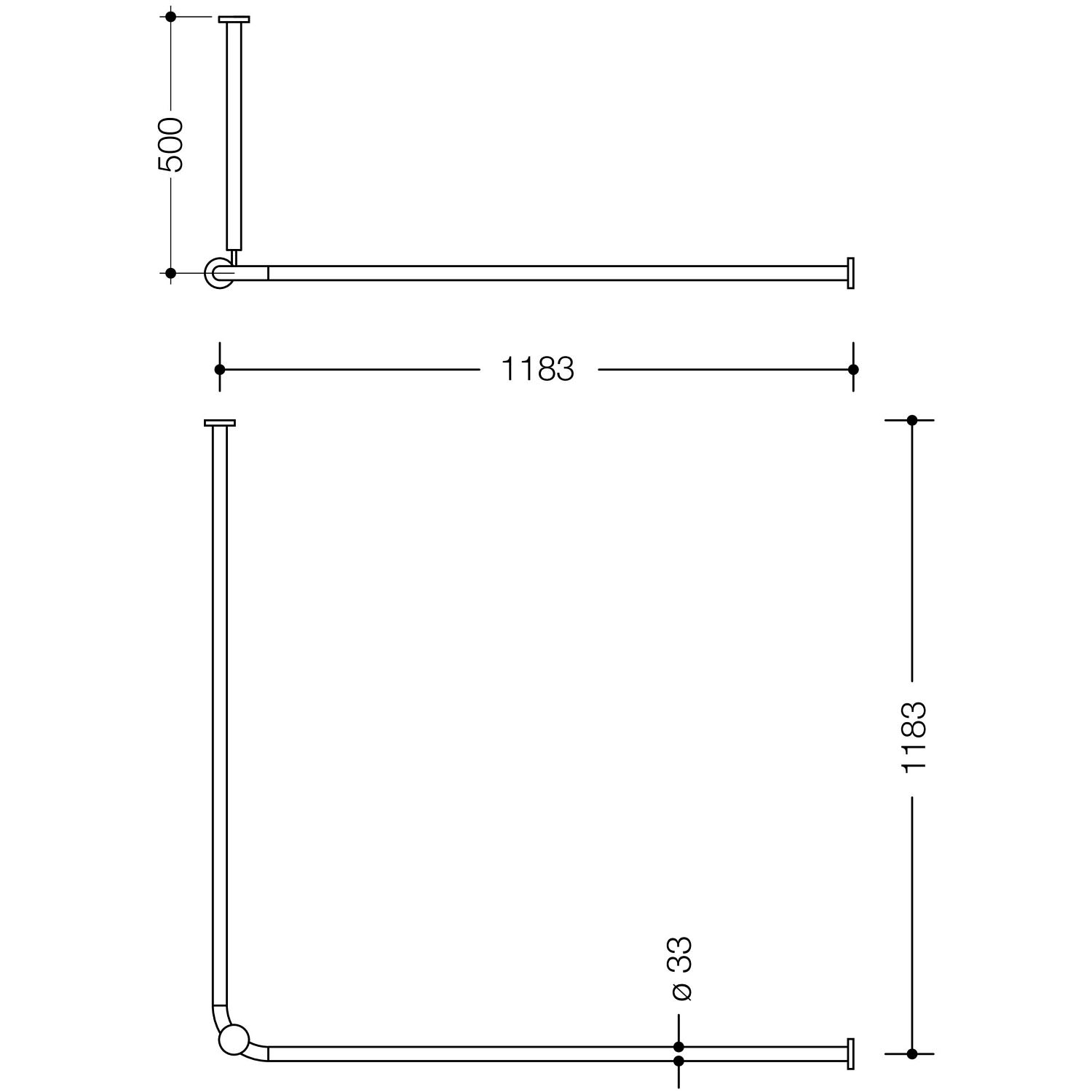 - Montage an Wand und Decke mit korrosionsfreiem HEWI Befestigungsmaterial und Rosetten