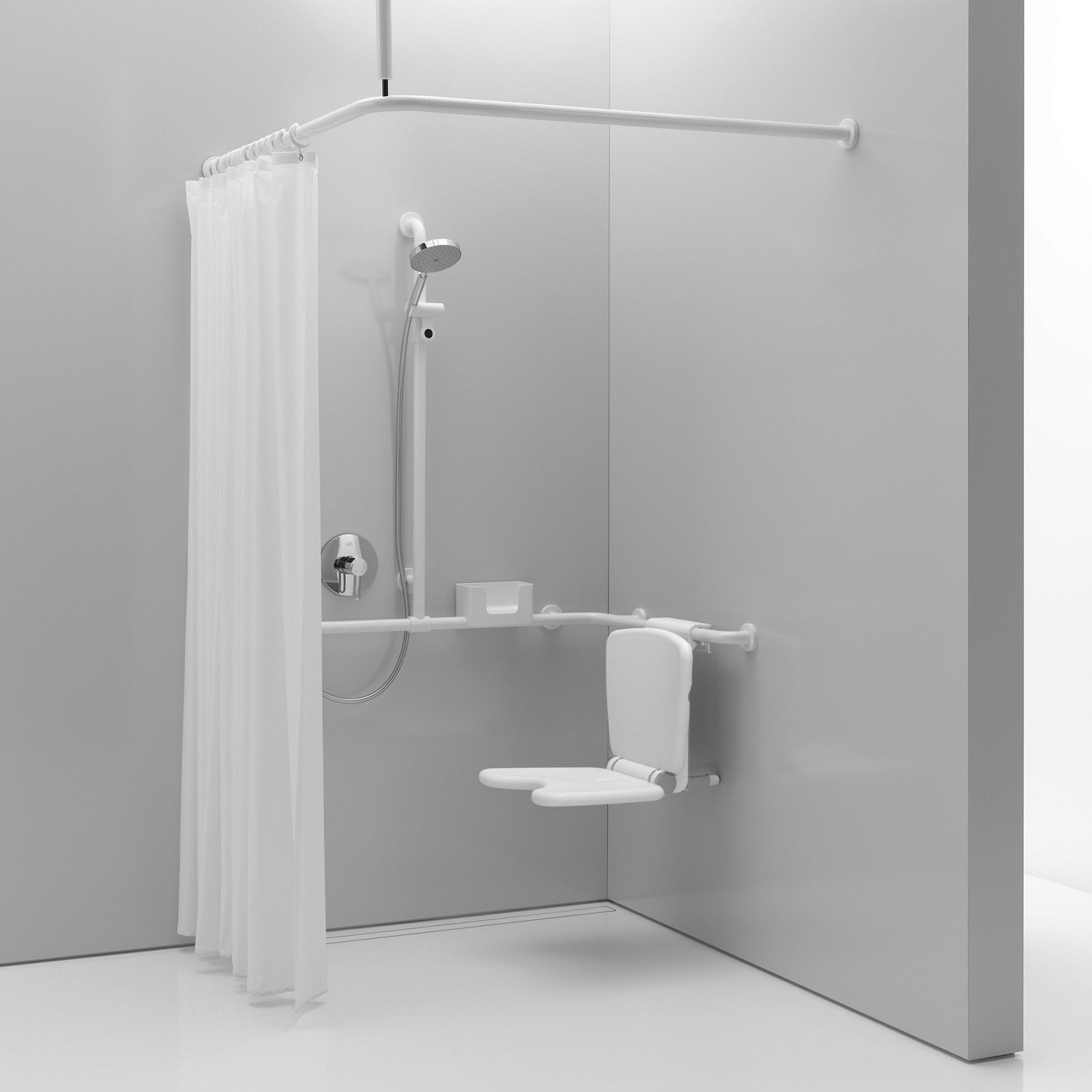 HEWI Serie 477/801 Vorhangstange mit Deckenabhängung