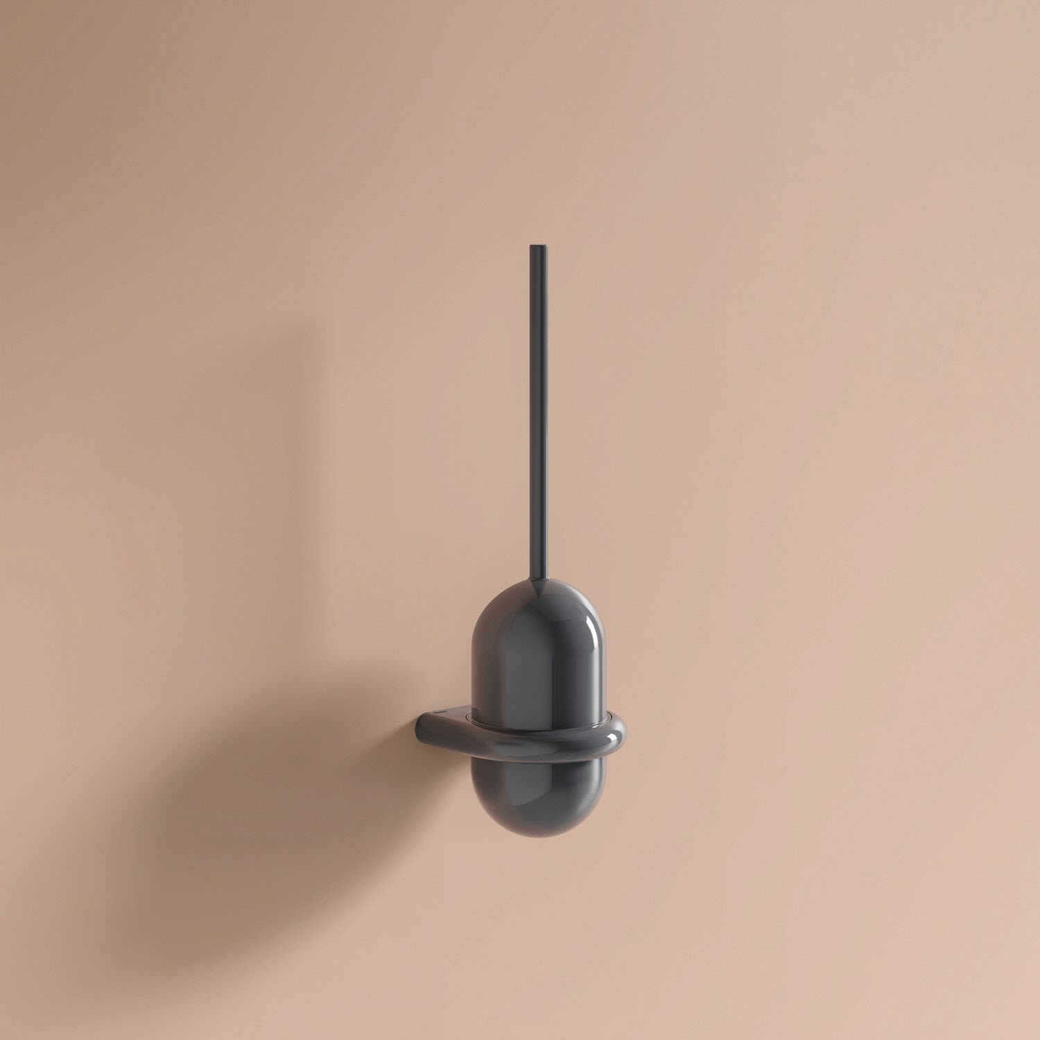- Bürstentopf mit gewölbtem Boden und sphärenförmigem, teilweise offenem Oberteil in ringförmigem Halter